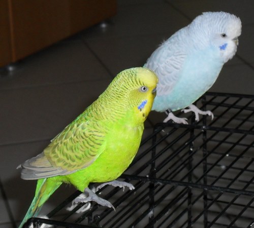 • War das Wochenende ja viel unterwegs und sehe jetzt erst, dass Robby heute so richtig in sich eingesackt auf der Stange herumsitzt. Also sozusagen in geduckter Haltung. Somit ist er eine ganze Ecke kleiner als Lenny, der neben ihn sitzt und ihn manchmal einfach leicht attackiert.