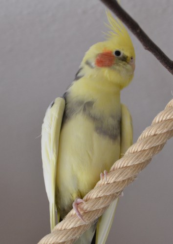 Doch dann geschah noch etwas: Birgit hatte vergessen, unser Frühstück zu machen. Stellt euch das einmal vor. Natürlich hatten wir mittags mächtig Kohldampf. Das sah dann so aus, dass ich mich zu Birgit auf die Hand setzte und den Rest Kolbenhirse fraß. Ich ließ mich auch nicht mehr absetzen. Ich blieb auf dem Finger wie eine Klette - festgetackert, so lange, bis ich satt war. Kann ja jeder behaupten, dass die Schälchen mittlerweile frisch befüllt wären. Nein, ich musste da schon meine Mahlzeit gut festhalten.