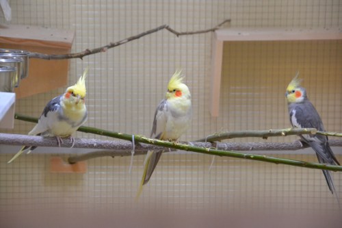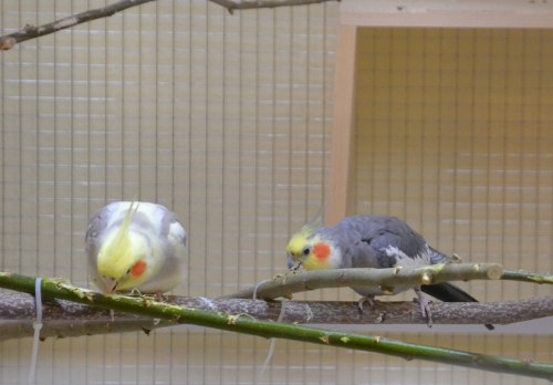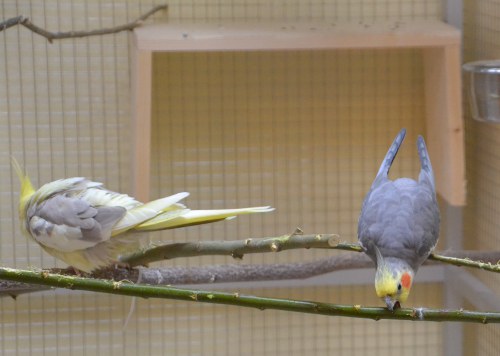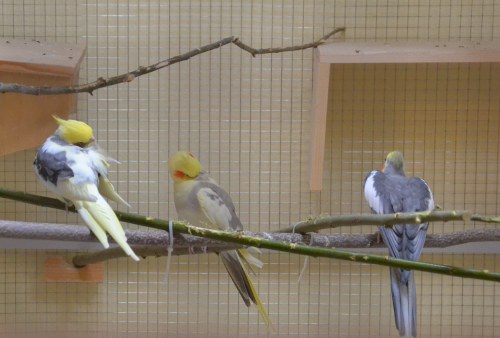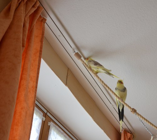 Sonst bleiben sie lieber bei sich. Keine Ahnung warum. Vielleicht wollen sie Charly Gesellschaft leisten, der ja flugunfähig ist. Oder finden sie ihre Voliere einfach schöner?