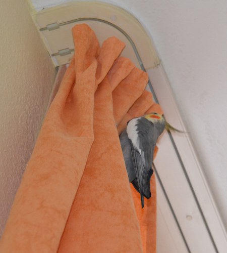 Irgendwie zieht mich der Vorhang zur Zeit magisch an. Nicht, weil ich ihn als Dekogrundlage nutzen will. Nein, dahinter könnten sich doch wunderbare Nistmöglichkeiten verbergen.