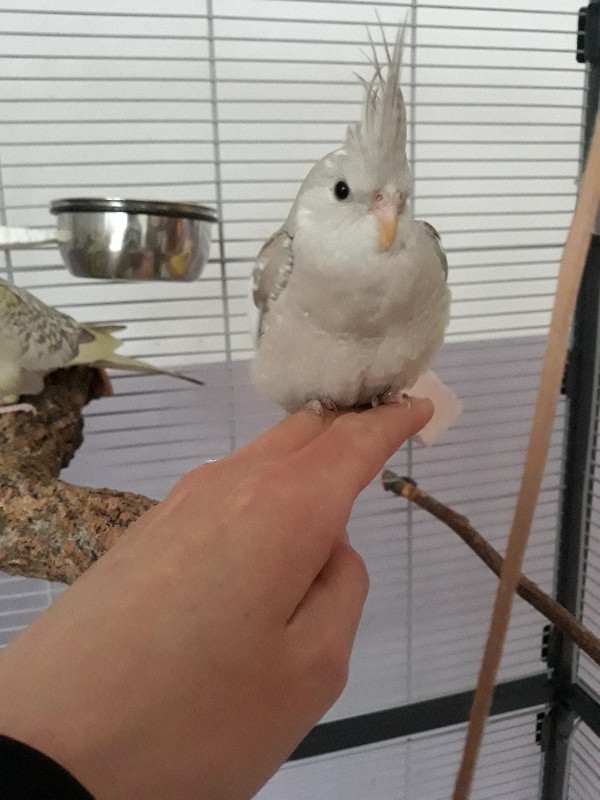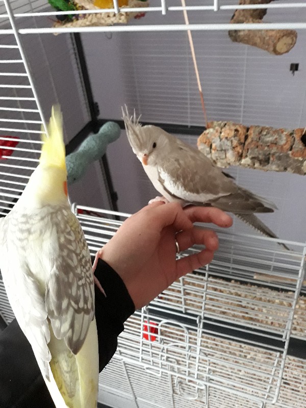 Aber dafür ist die hübsche Dame in Weißkopf Zimt gerade hier eingezogen, Riley hat sich sehr gefreut das er wieder einen Partner hat.