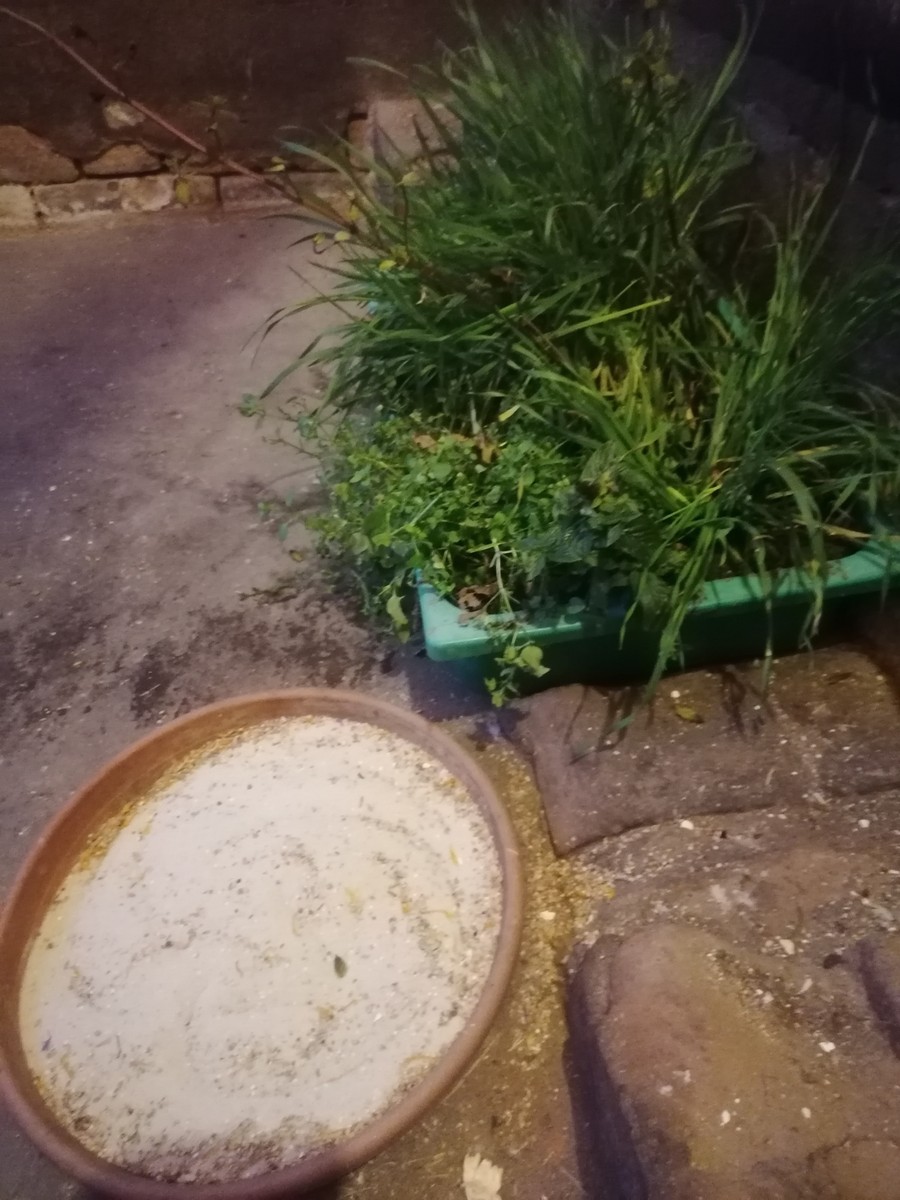 es sollten schon etwas drin sein, was auch für alle auch gut ist und nicht sofort gefunden wird, vielleicht auch getrocknete Kräuter. wie Basilikum, oder Buchenholzgranulat. Es können auch Holzwäscheklammern sein und was immer gut ist, ist Grit und Sand oder Knaulgrassamen. ![]()