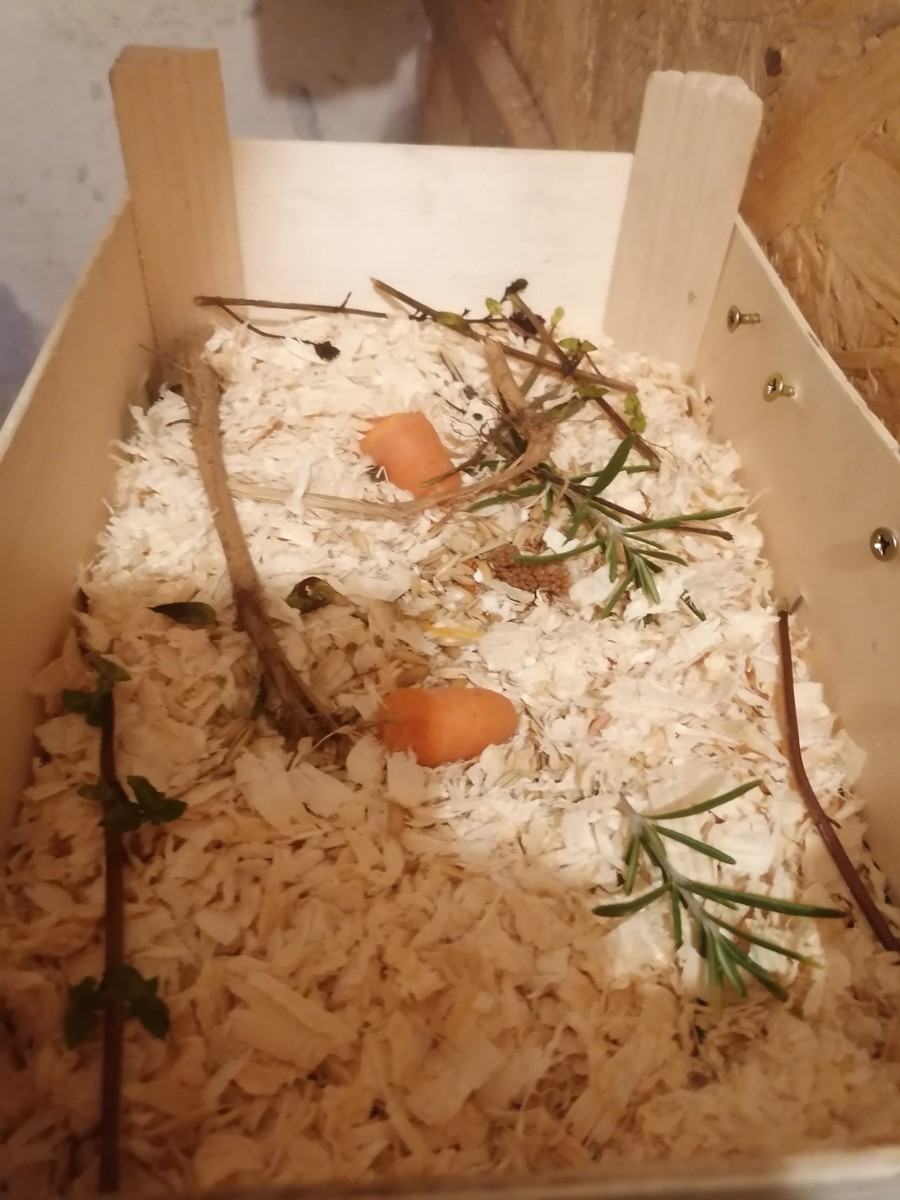 es sollten schon etwas drin sein, was auch für alle auch gut ist und nicht sofort gefunden wird, vielleicht auch getrocknete Kräuter. wie Basilikum, oder Buchenholzgranulat. Es können auch Holzwäscheklammern sein und was immer gut ist, ist Grit und Sand oder Knaulgrassamen. :witz: