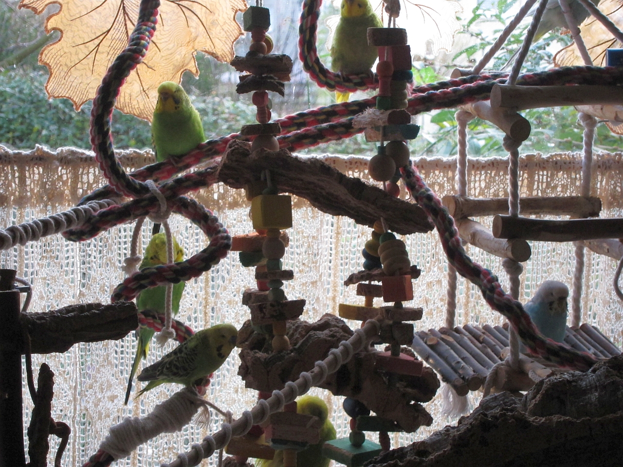 Wie schon beschrieben sollten die Rheinländer Federtierchen auch mal wieder was Neues zum Spielen haben. Der Federlose hat sich ja wieder mächtig ins Zeug gelegt, sagt Tinchen, und probiert gerne heute mal die neue Korkschredderspielzerstörschaukel aus. ![]()