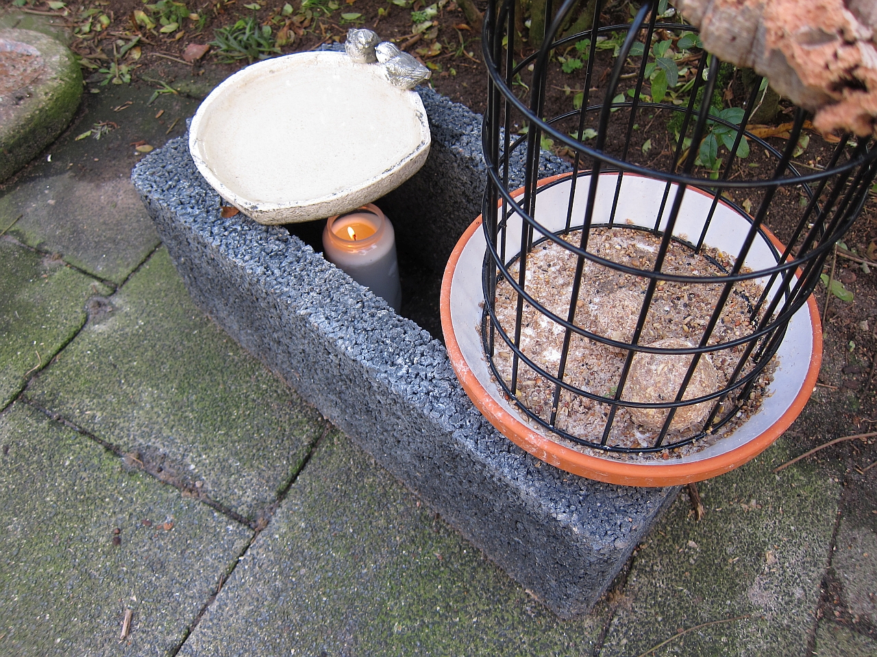 Eine Vogeltränke sollte im Winter auch eisfrei sein. habe da so einen Tipp für Gartenfreunde. Das Problem kennen bestimmt die Vogelfreunde, die im Winter eingefrorenes Wasser für die Wildvögel hinstellen. Wir haben es ganz einfach nach dem Prinzip der Teewarmhaltung gelöst. Man braucht nur einen Hohlstein aus dem Gartencenter und eine Grabkerze, - die eine sehr lange Brenndauer hat. Stein etwas aufbocken damit Luft dran kommt und die Kerze reinstellen. Wasserschale friert nicht mehr ein. Bei uns war der Stein etwas größer, also habe ich noch eine Futterschale dabei getan. Die Spatzen sind sehr dankbare Trinker bei der kalten Jahreszeit. Die Kerzen bekommt man jetzt überall als Grablichter in Weiß oder Rot und die brennen sehr lange.