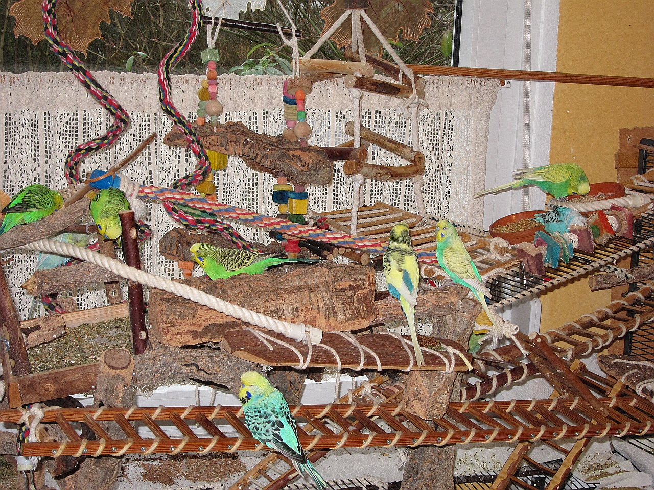 Na ja, jetzt im neuen Jahr sind die Wellis immer mit dem kurzen trüben Tageslicht konfrontiert und sie halten sich sehr instinktiv auf der Gardinenstange bzw. am Fenster auf. zum Leidwesen der Federlosen, denn wir müssen dann den Fensterrahmen häufig reinigen, und auch die Gardinen. :lauteslachen: