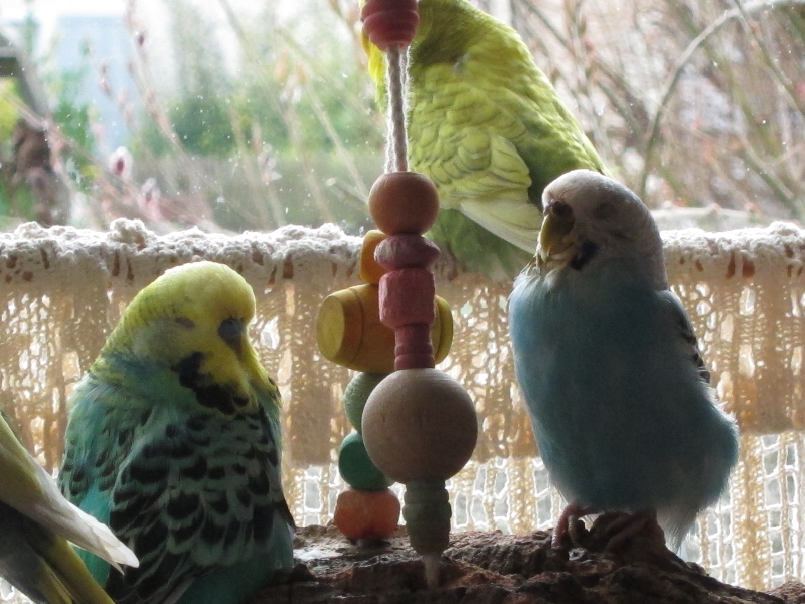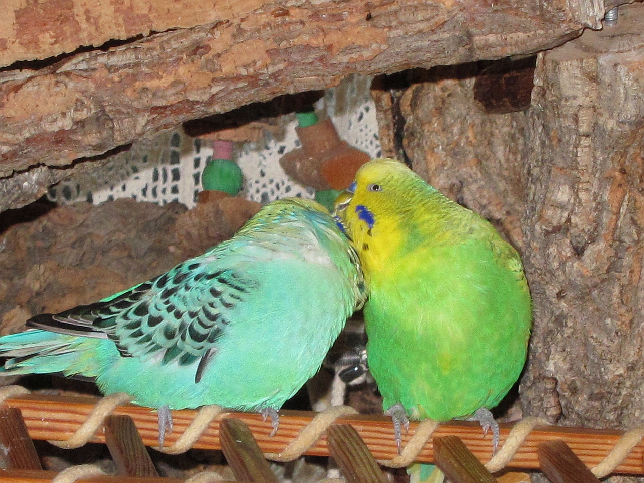 Sie bekommen ihr Gemüse und die Töpfe sind von der Tiefe her reduziert, mit Tonschälchen damit nicht zu viel Futter reinkommt. Es ist schon ein schlimmes Los mit den Wellis je dicker sie sind, desto weniger fliegen sie und die Schlanken bleiben schlank. ![]()