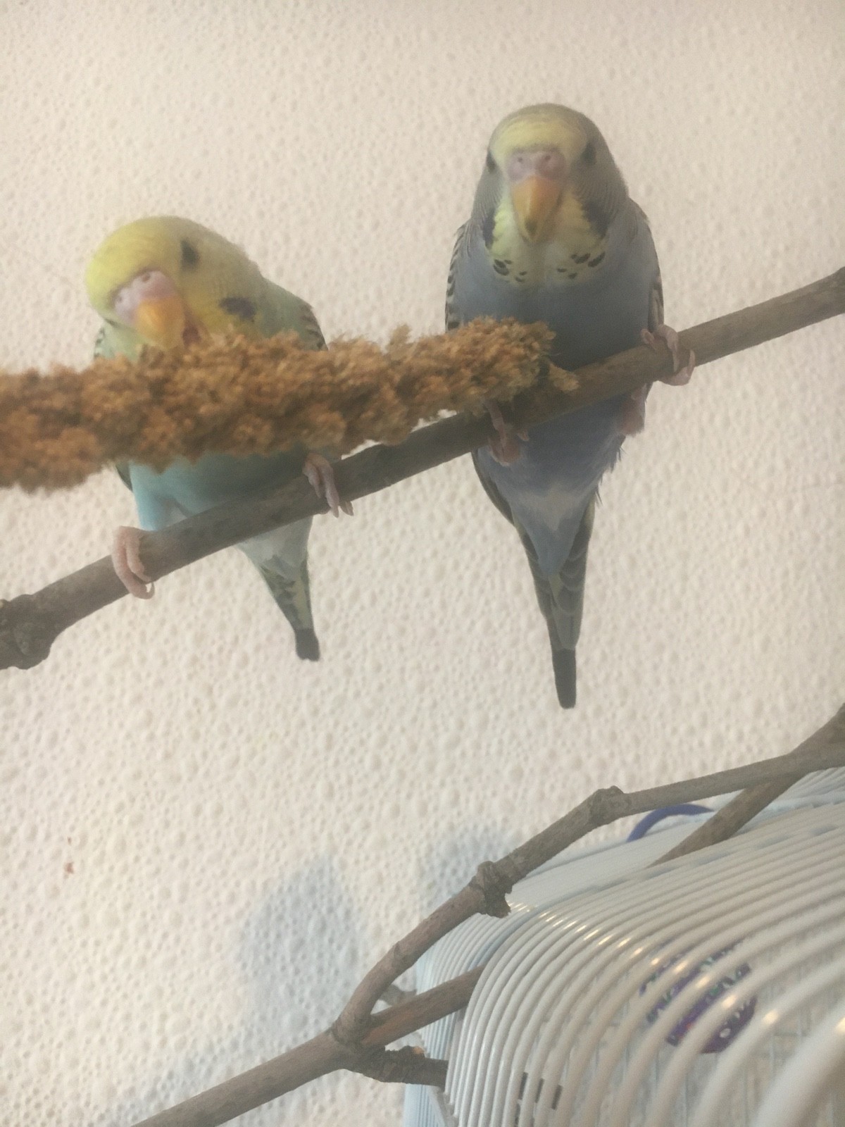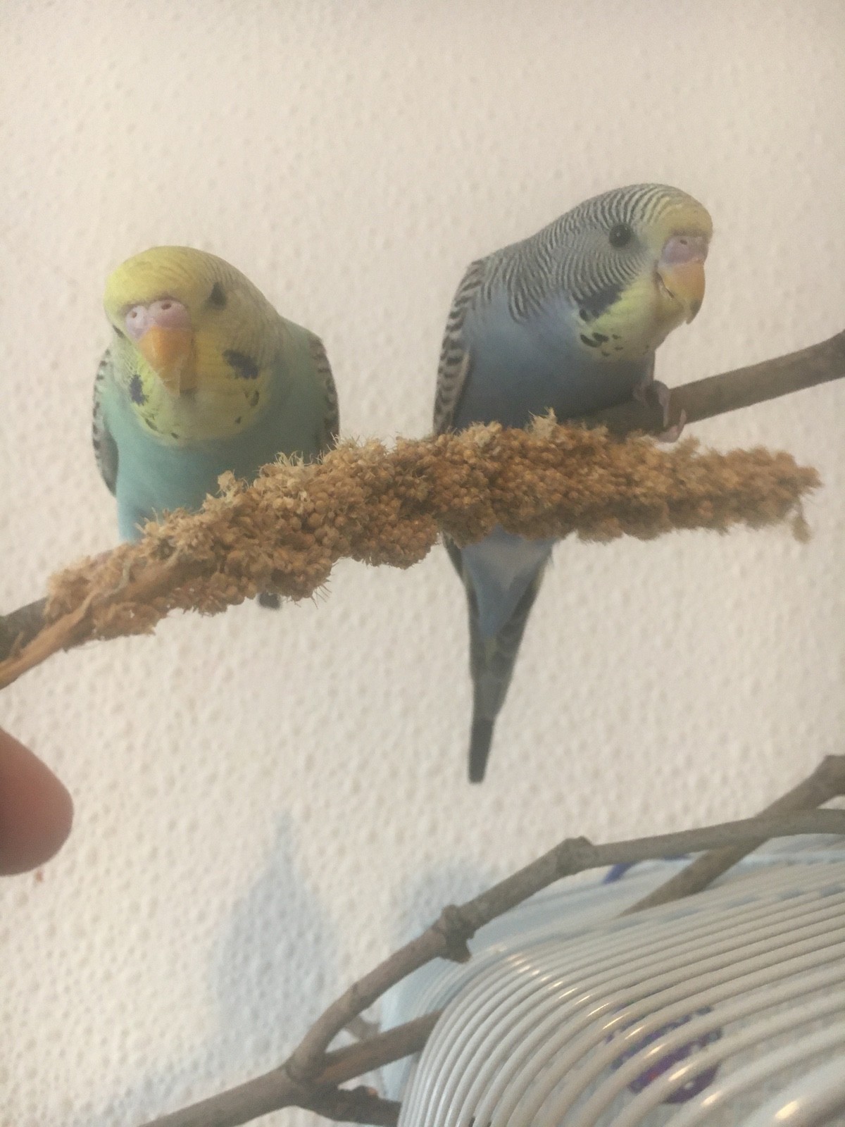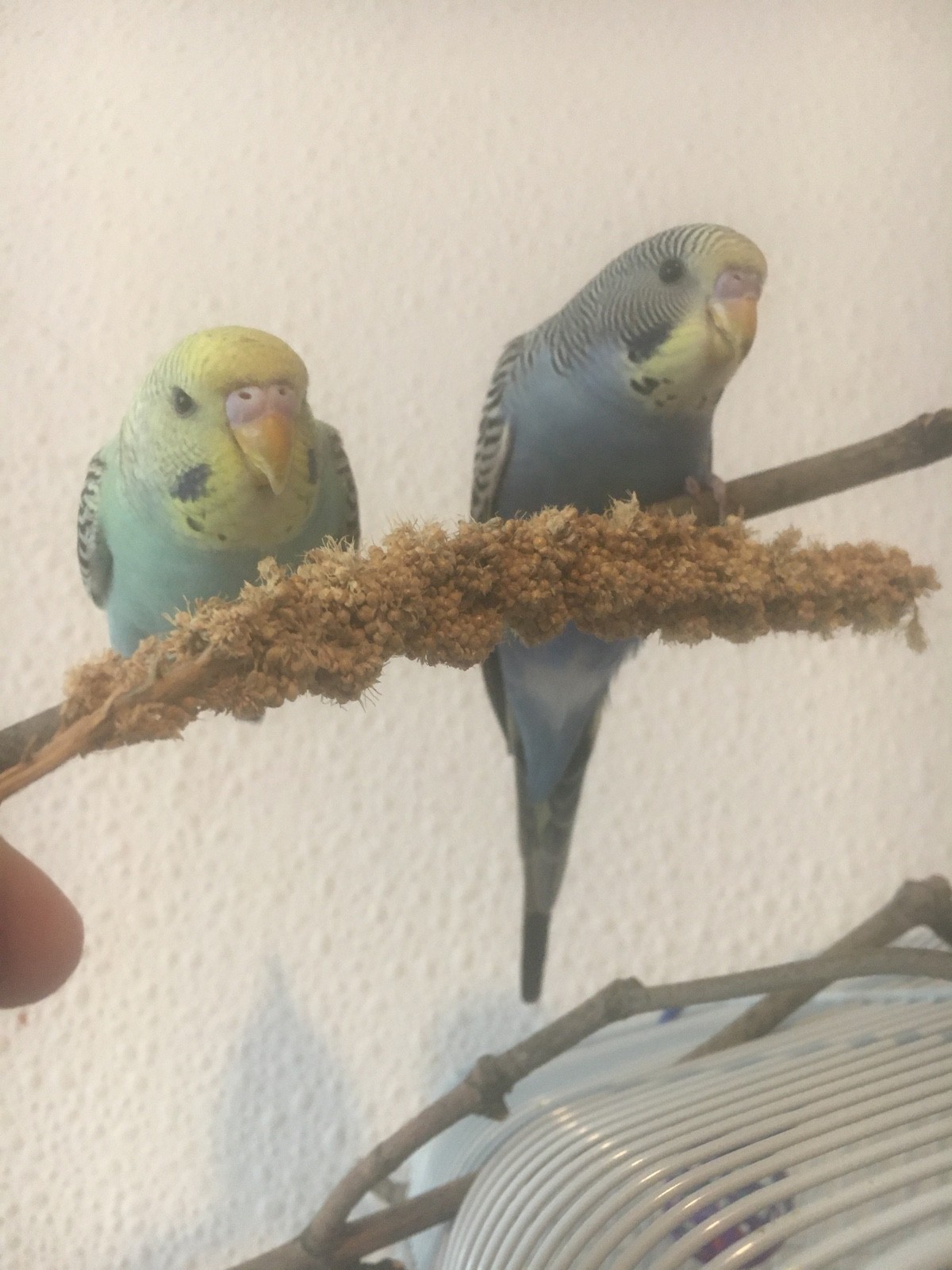 Die hellere Lilly (Rainbow!?)erzählt zwar den ganzen Tag, der/die Blue ist eher ruhig, lässt sich aber nix gefallen von der anderen ?♀️ beide sind ca 13 Wochen, laut Züchter ist die helle 1,5 Wochen älter als Blue die beiden sind alters gemäß sehr agil und immer zu Dummheiten aufgelegt? sie kabbeln sich sehr viel, aber es wird auch gegenseitig gefüttert und gepflegt. Freiflug haben sie fast den ganzen Tag und werden auch von den Kindern genug bespielt. Noch nicht ganz handzahm aber auch keine Angst?