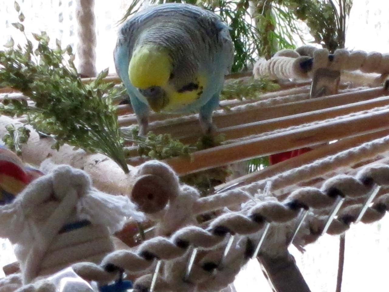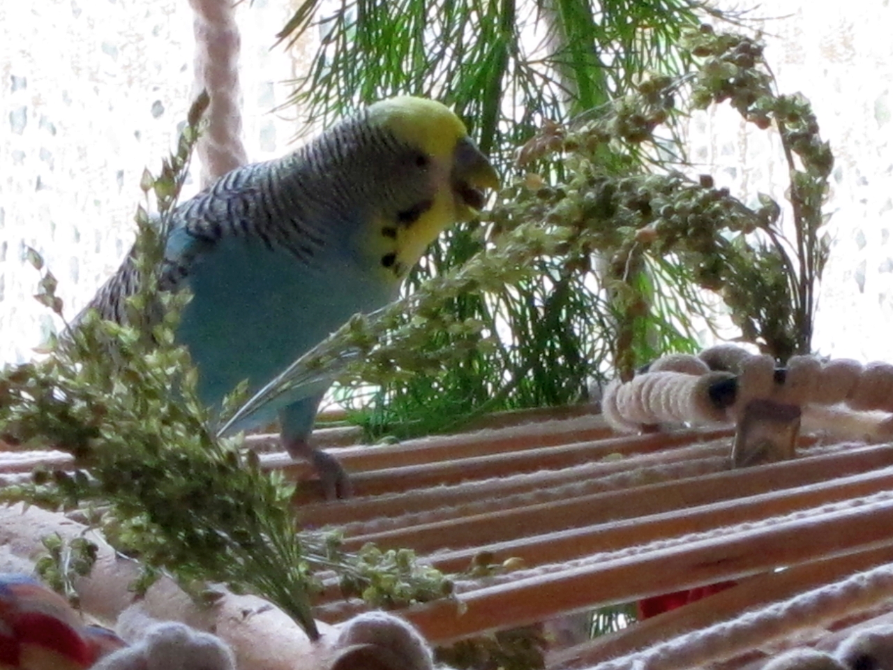 Also wie es scheint ist das Bad im gut riechenden Dill wohl der Renner für die Wellis. Dieses mal ist es wohl der Bubi, der Dillfan ist und nach dem Bad im Dill noch ein kleiner Snack, frische halbreife Silberhirse ist dann auch noch drin........ :daumen: