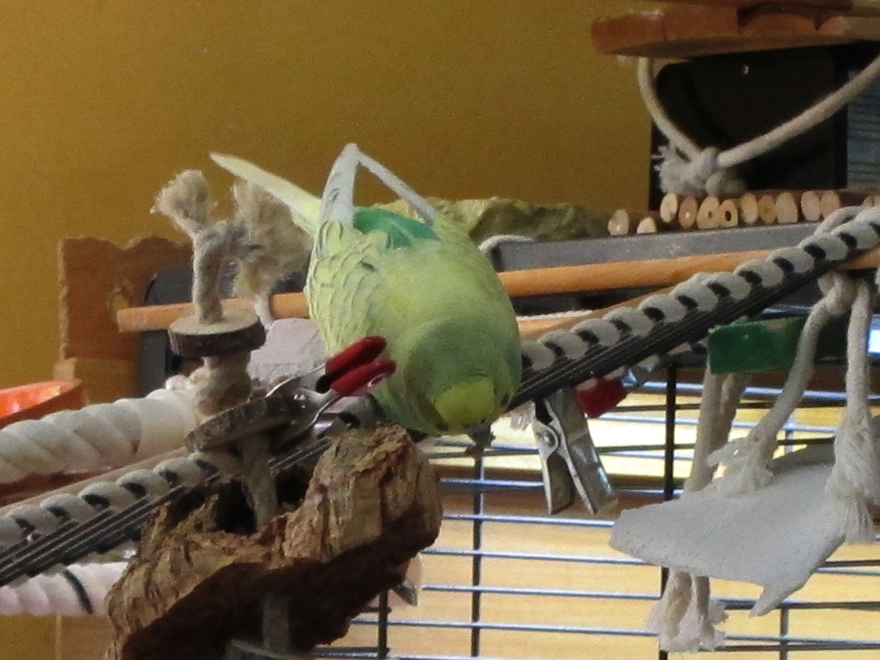 Habe doch Ostermontag gerade ein neues Korkschredderspielzeug von S. bekommen! habe es Dienstag einfach mal so an die Leiter gehängt.........