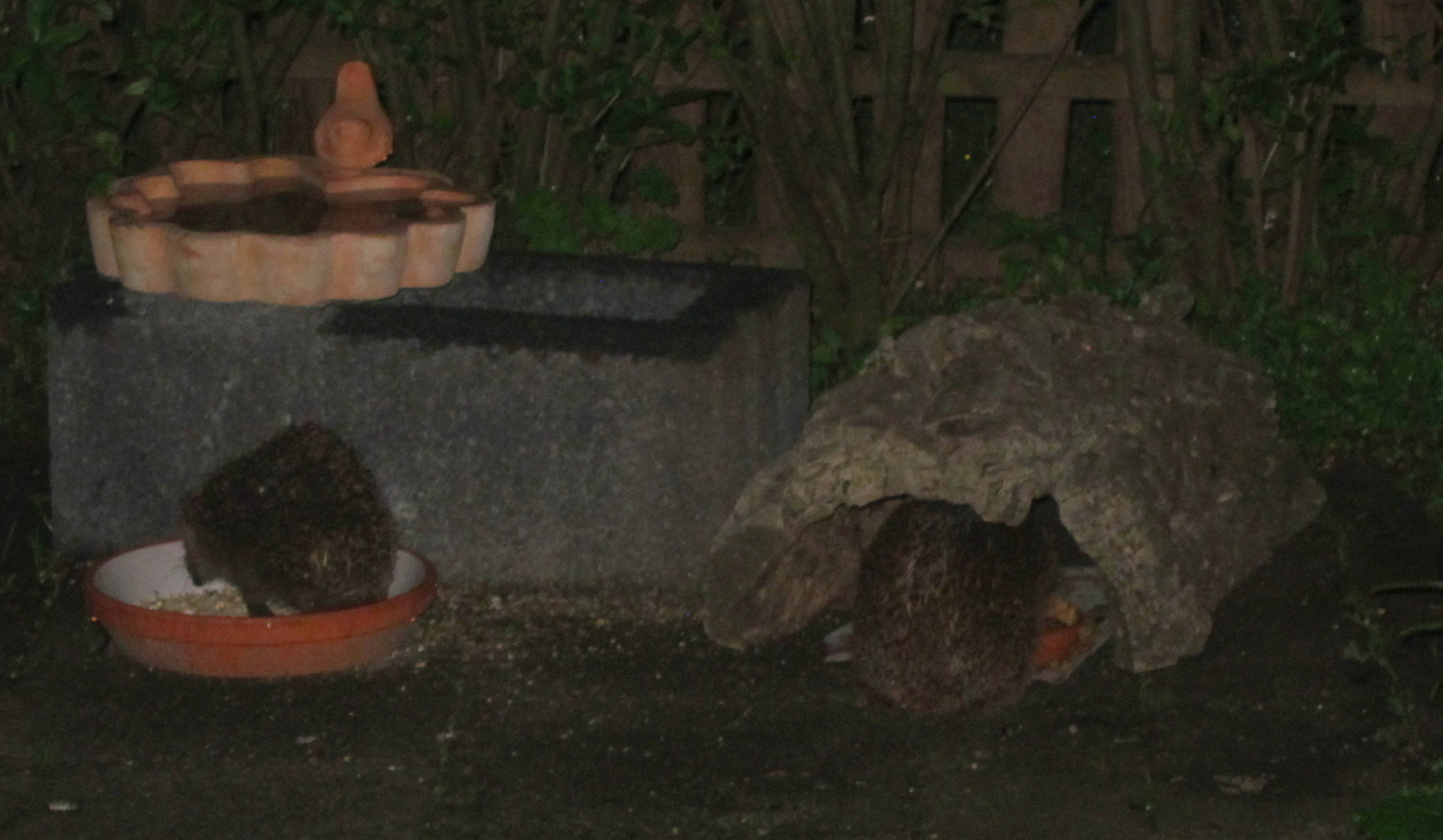 So langsam kommen wieder die besonderen Hofgäste zum Vogelfutter. Da müssen wir erst einmal improvisieren. Der große Futterpott wird kurzerhand zum Igelfutterpott umfunktioniert. Aber Ähnlichkeiten bestehen doch, sie mögen die Korkröhren