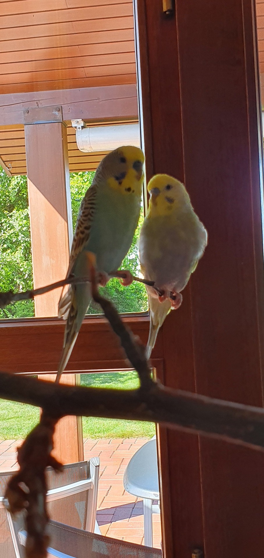Hallo, wir haben 2 Wellensittiche, Fipsi (der Grüne) und Coco (der Blaue). Beide ca. 1-2 Jahre alt, putzmunter und gesund. Leider leidet unsere Oma, die sehr oft bei uns ist unter einer starken Allergie. Daher müssen wir die beiden schweren Herzens abgeben. Uns ist es sehr wichtig, dass die beiden ein schönes neues Zuhause bekommen. Sie sind beide ganztägig Freiflug gewohnt. Dabei machen sie nichts kaputt und halten sich meist auf dem Käfig oder ihrem Kletterbaum auf.