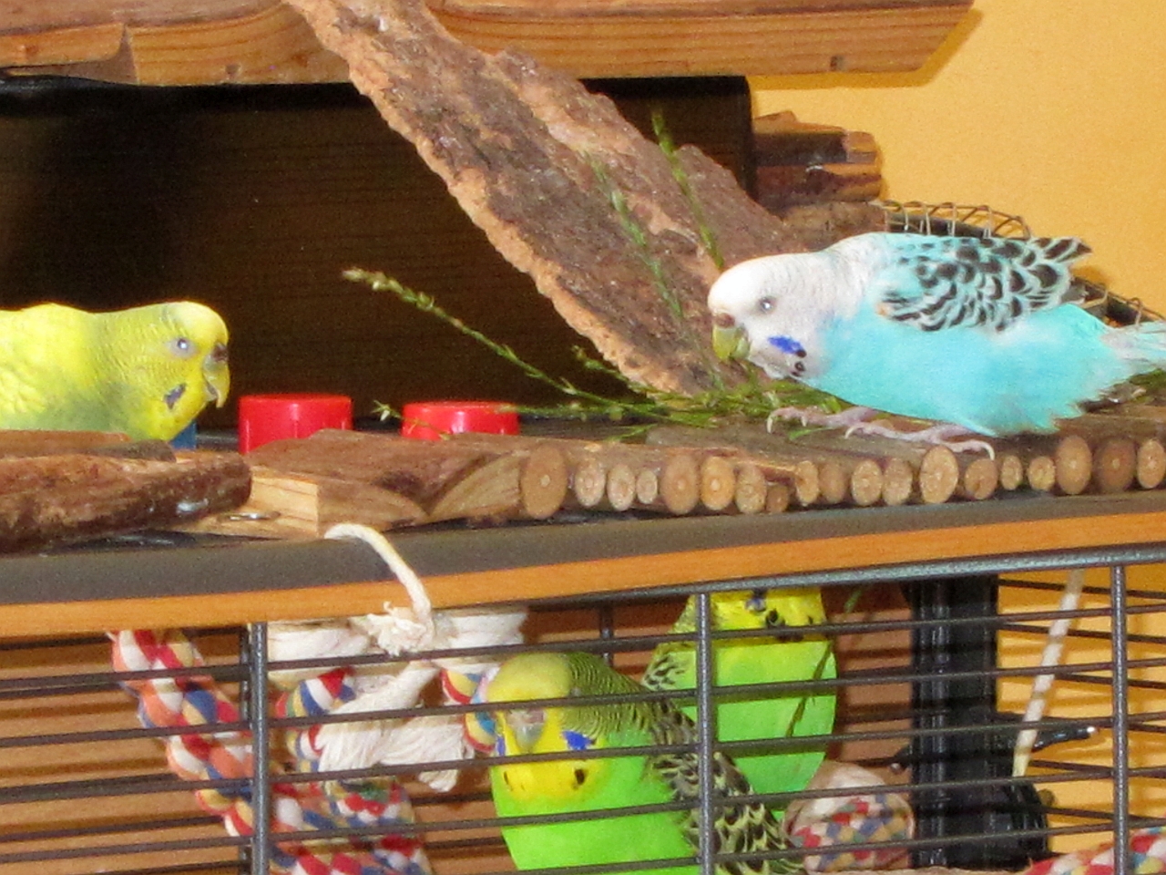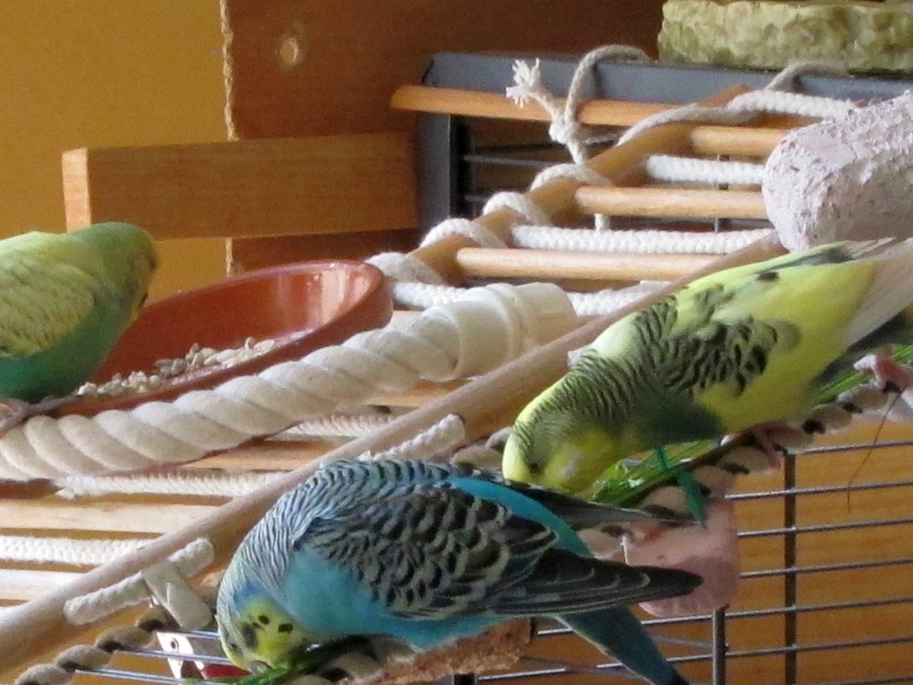 Drei meiner Vierer-Bande waren heute früh aktiv und haben sich nun zur Siesta in die Voliere zurückgezogen.
