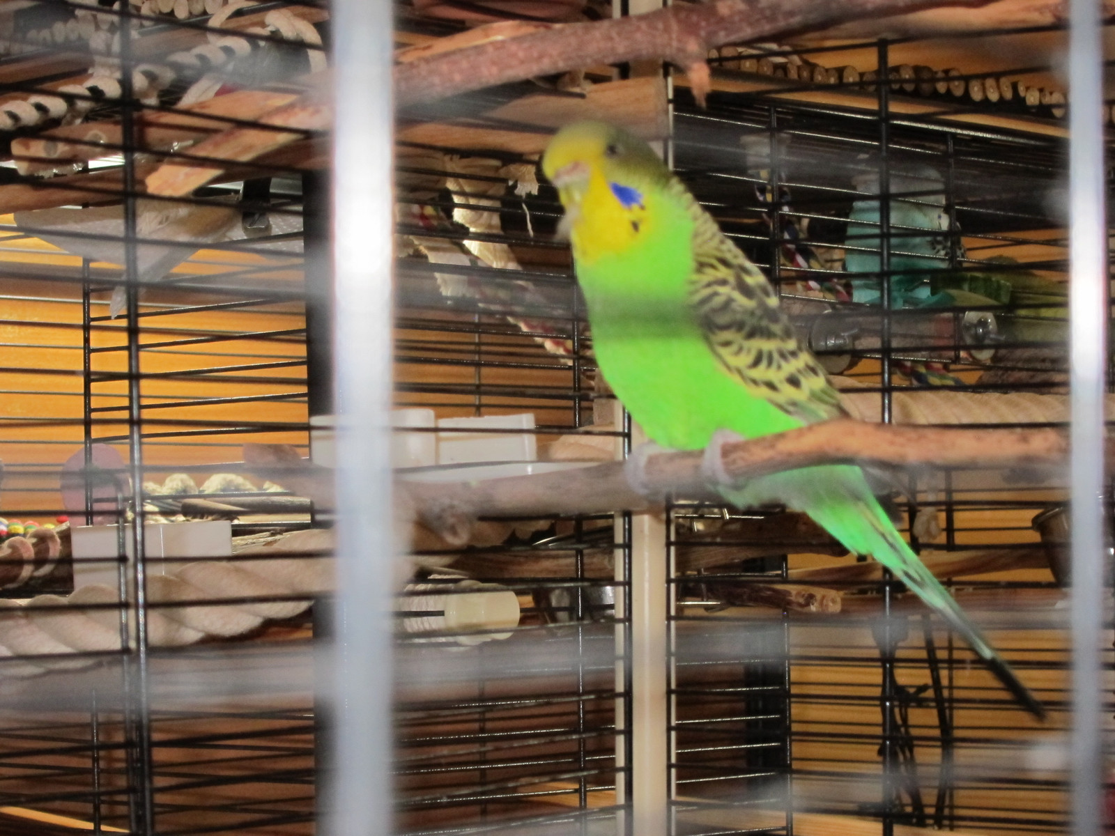 Da ist sie noch in ihrem Käfig, der war schon sehr groß, sie wurde aber auch gut mit einem anderen Vogel schon gut gehalten, da die Mama die beiden auch immer umsorgte. :bravo: