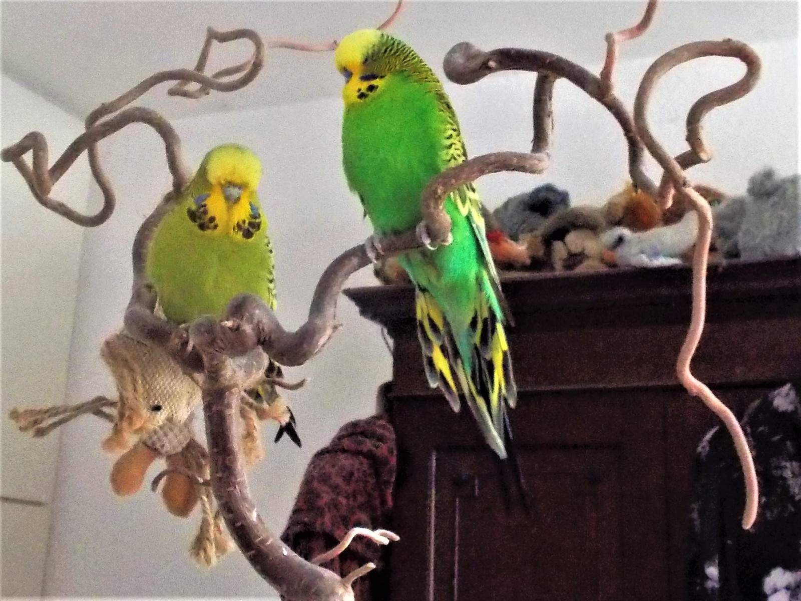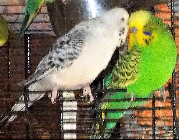 Heute Morgen stand ich gerührt vor der Voliere. Ottilie saß hinter Leopold, der ihr den Rücken zugewandt hatte. Sie steckte mit ihrem Köpfchen in seinen Rückenfedern und kraulte ihn sanft. Leopold ließ sich das gefallen, drehte sich dann um und schnäbelte spontan mit ihr.