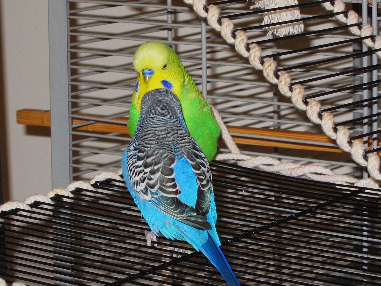 War aber auch nicht so toll, jetzt sitze ich Nachts in einer großen Voliere alleine und morgens darf dann mein Freund zu mir......
