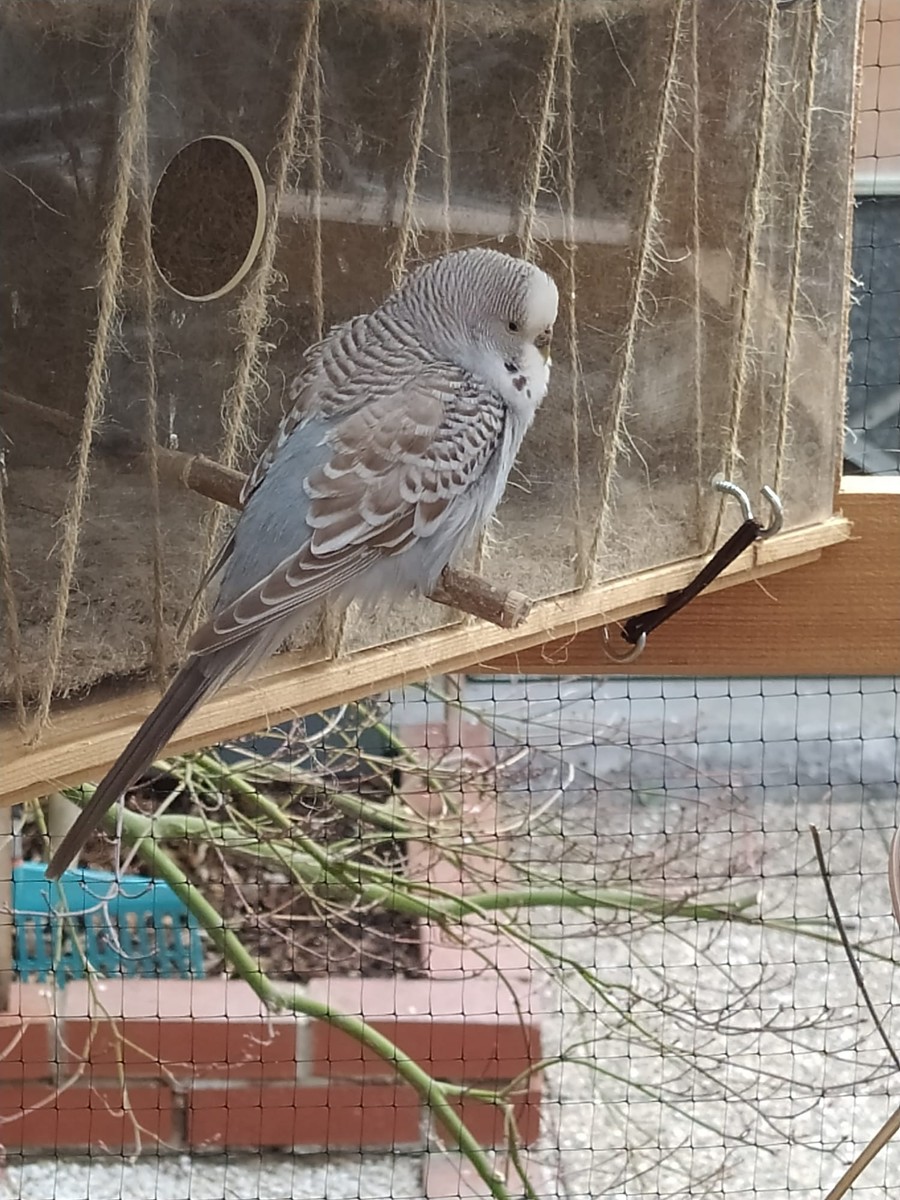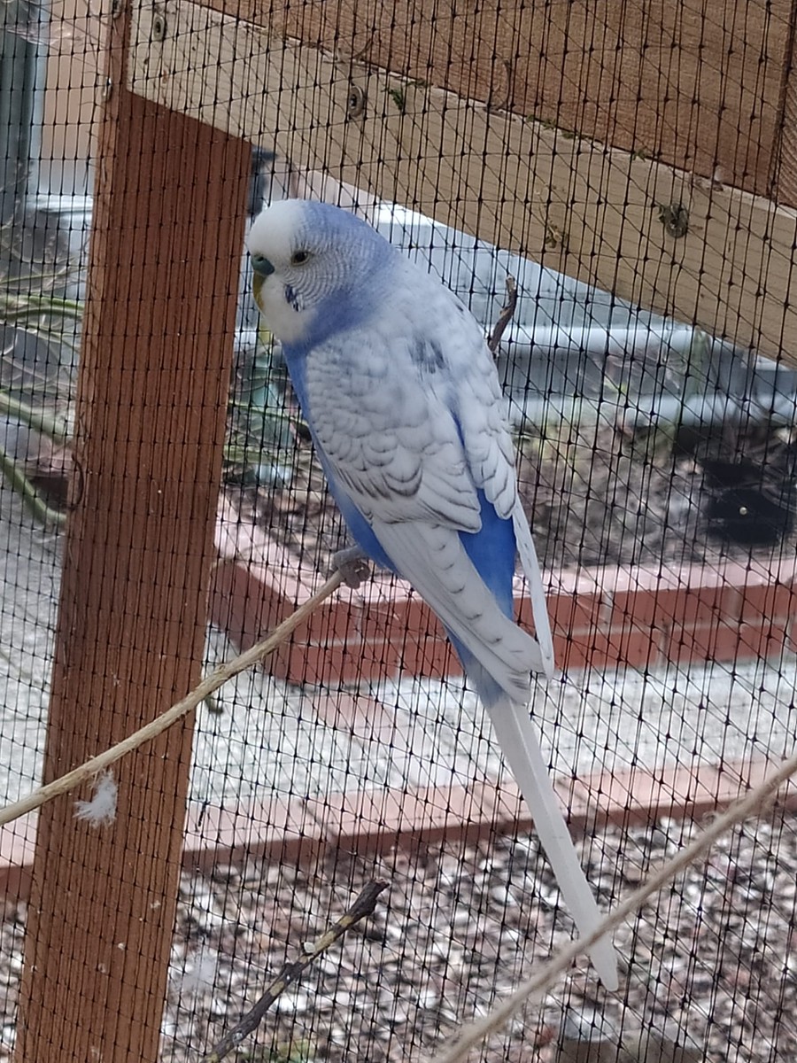 Weiß-geschecktes Weibchen: Hellblau (0-Dunkelfaktor), rezessiver Schecke - Blaureihe