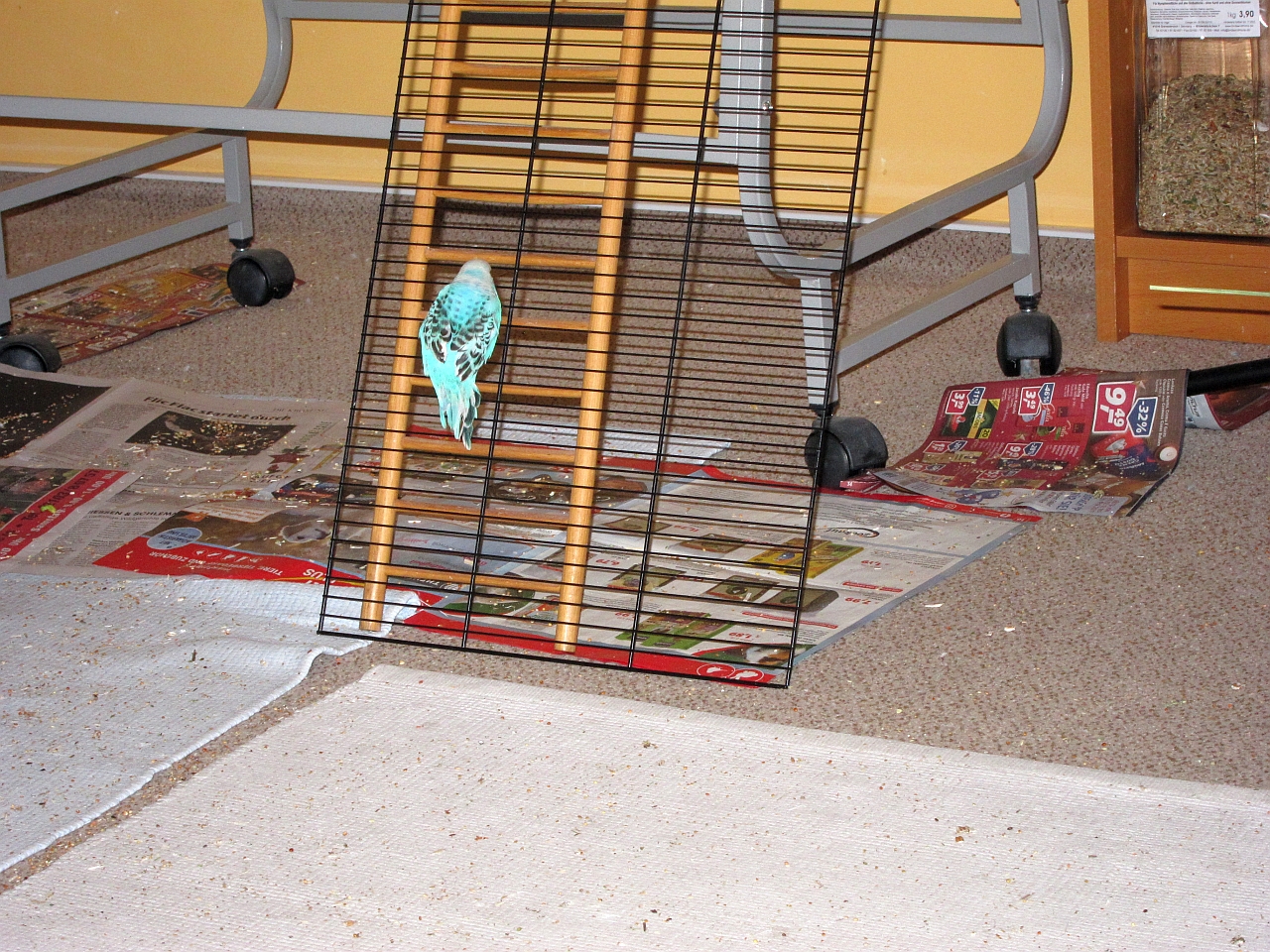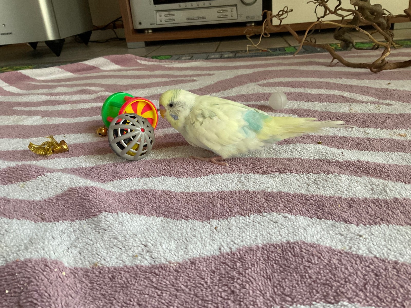 Mein Geierchen Willi ist jetzt 7 Monate alt. Ich habe ihn bei einem mir bekannten Züchter gefunden. War eigentlich auf der Suche nach 2 jungen Wellensittichen und habe Willi einsam auf der Stange sitzen sehen. Im Nacken keinen Federn, Flügel nicht ausgebildet und keinen Stetz. Der Züchter meinte, dass er Willi wohl einschläfern müsste da er nicht vermittelbar sei. Da habe ich ihn mitgenommen. Der Züchter hatte noch einen 2. Sittich mit kaum Federn. Leider war er zu jung. Wollte ihn dann 1—2 Wochen später holen. Leider hat er es nicht geschafft ?. Darum muss Willi weiter alleine Hopsen ?. Wie andere Vögel Freiflug hat mein Willi Freilauf, den er sehr begrüßt.