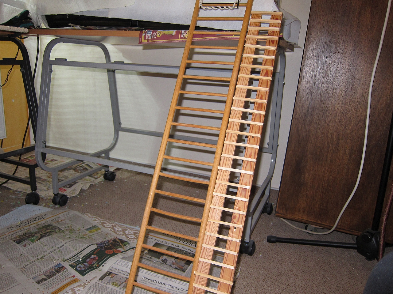 Eigentlich ist es kein Problem so etwas zu basteln, die Sprossen sollten auch nicht zu weit sein, bei dieser hier ist das schon für einige Wellis im Alter schon schwierig, deshalb habe ich die Sprossen abstände schon mal kleiner gemacht. ![]()