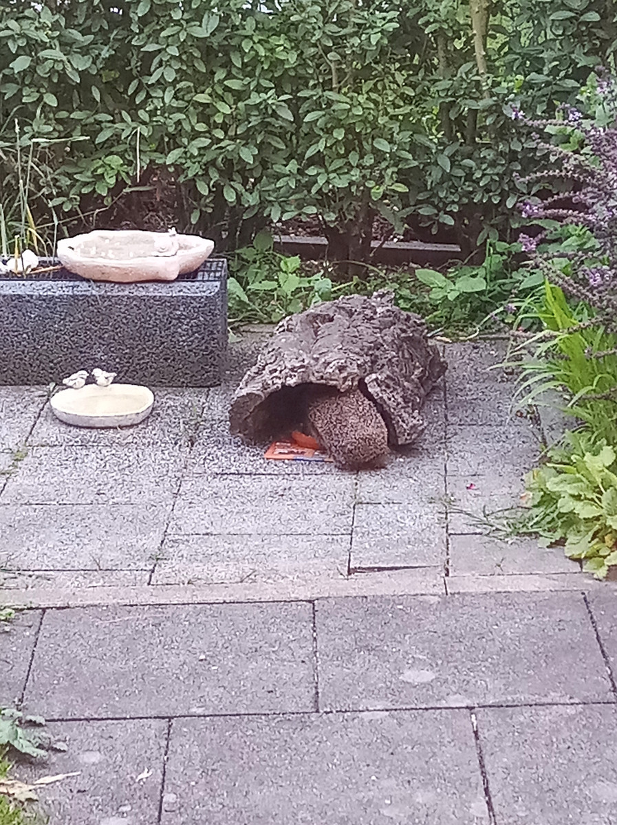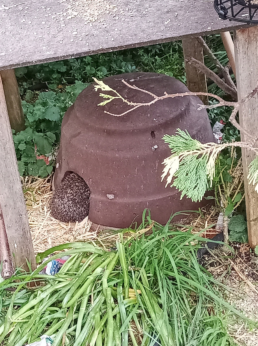 Also habe ich schnell noch ein Igelhaus besorgt, da wir in unserer Igelkuppel schon einen Igel haben und der fühlt sich dort Igel wohl ![]()