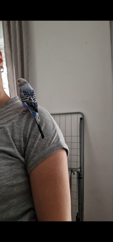 Letztens kam Blue sogar auf meine Schulter und hat an meinen Haaren geknabbert?