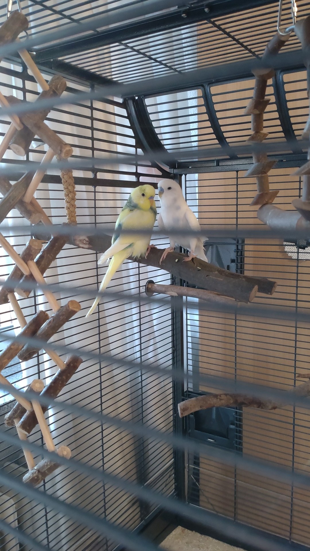 Tchio (gelb-grün/blau) und Sasu (weiß mit wenigen hellblauen Flecken) sind letzten Freitag, am 16. August, bei meinem Partner und mir eingezogen. Die beiden sind meine ersten Wellis seit 13 Jahren und ich bin immer noch total aufgeregt und freue mich unwahrscheinlich Ich dachte, es wäre schön, wenn man gerade die erste Zeit mit den neuen Wellis dokumentiert, vielleicht gibt es ja auch noch hilfreiche Ratschläge
