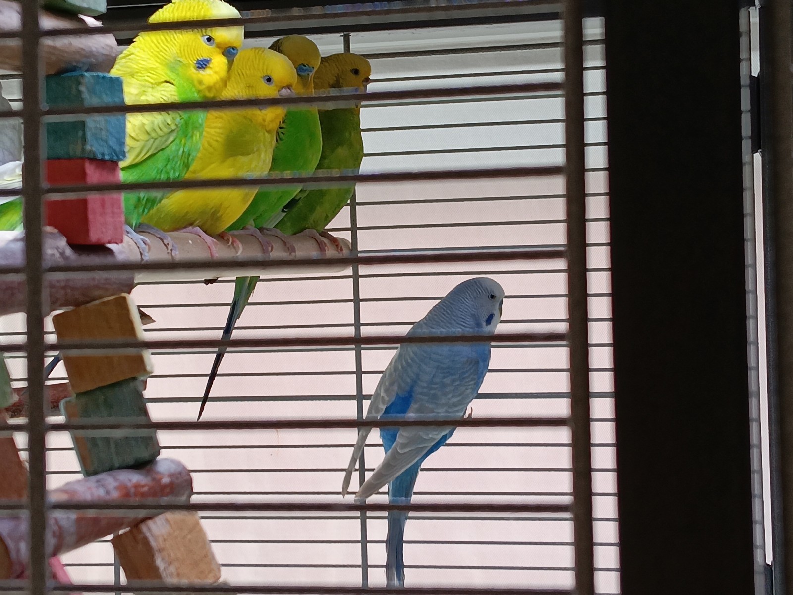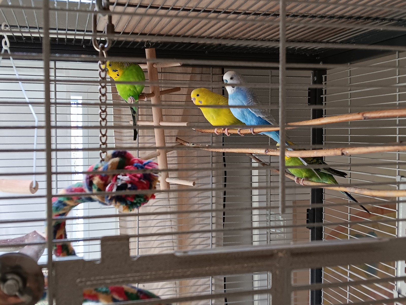 unsere Welli Familie (2 Weibchen, 3 Männchen) sucht ein neues zu Hause. Wir würden uns freuen wenn jemand alle 5 nehmen würde. Sie leben zusammen in einer großen Käfig-Voliere. Die Vögel vertragen sich wunderbar, (ein Vater und seine 4 Kinder) eben eine süße Familie.