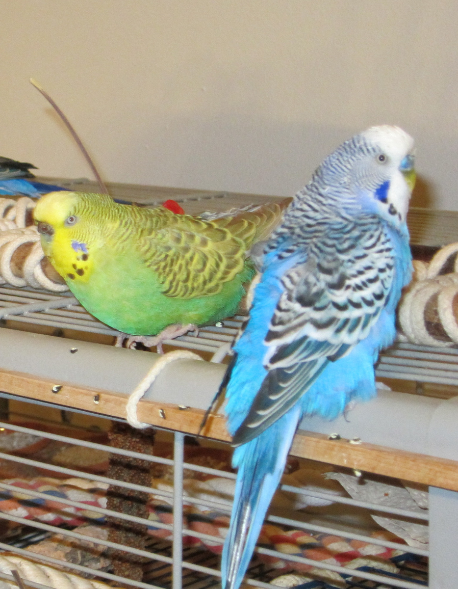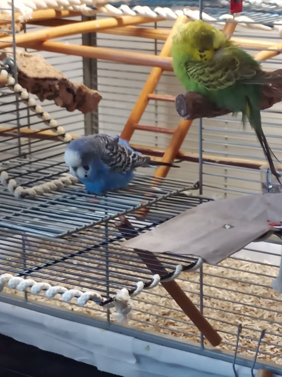 , zur kleinen Geschichte von Joshi und Lisa. Ich bekam eine Bitte, da würden in einer Wohngruppe für Behinderte 2 Wellies hocken, seit ca. 6 Jahren in dauerhaft gehaltener Käfighaltung, die zwar gut versorgt wurden; jedoch nie heraus durften und dass sich die Situation der Vogelbesitzerin veränderte. Der Pfleger sagte zu mir, ich solle doch mal schauen, ob ich neue Besitzer finden könne, da ich ja in einem Forum mich betätige. Gut gesagt und auch getan. Nachdem ich die Beiden zu uns geholt habe, mussten erst einmal die Füße behandelt und die Schnäbel in Form gebracht werden. Da die 2 immer auf zu dünnen Stangen saßen und keinerlei ausreichende Mengen an Mineralien geschweige denn Gemüse bekamen, haben wir erst einmal sie samt Voliere bei uns ins Wohnzimmer gestellt und sie beobachtet und sie 6 Wochen beobachten lassen, wie das so in einem großen Schwarm von 9 Vögeln so abgeht