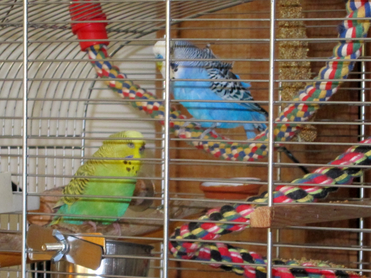 Auch die schöne Seilspirale, sie ist den Frischlingen zwar sehr ans Herz gewachsen, jedoch auch ein schöner Platz zum Hängenbleiben mit den Krallen, die ja auch ständig geschnitten werden müssen. Der Schnabel und die Fußnägel macht dann der Federlose, er kann das ganz gut und wir brauchen nicht zur Fummeltante. ![]()