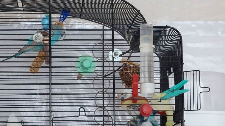 Die hatte nichts Besseres zu tun als mich in die Füßchen zu zwicken. Also bin ich noch mal wieder auf die sichere Stange zurück. Später habe ich mich dann getraut zu Ihr in den Käfig zu fliegen.
