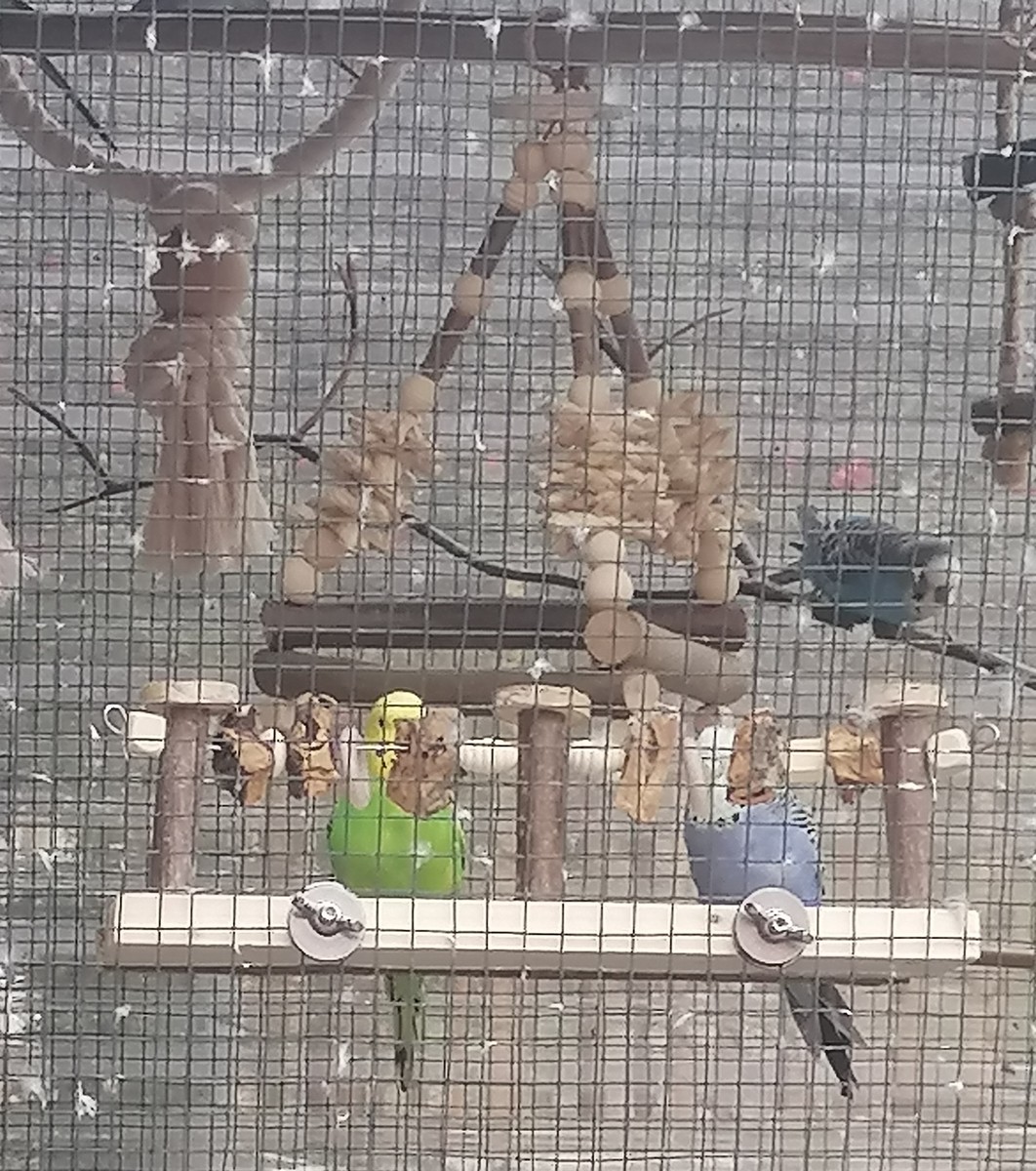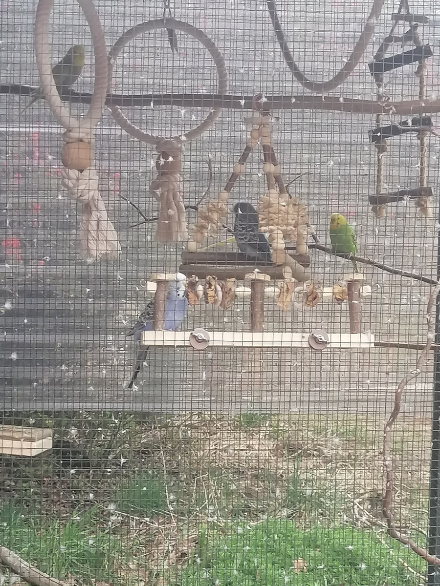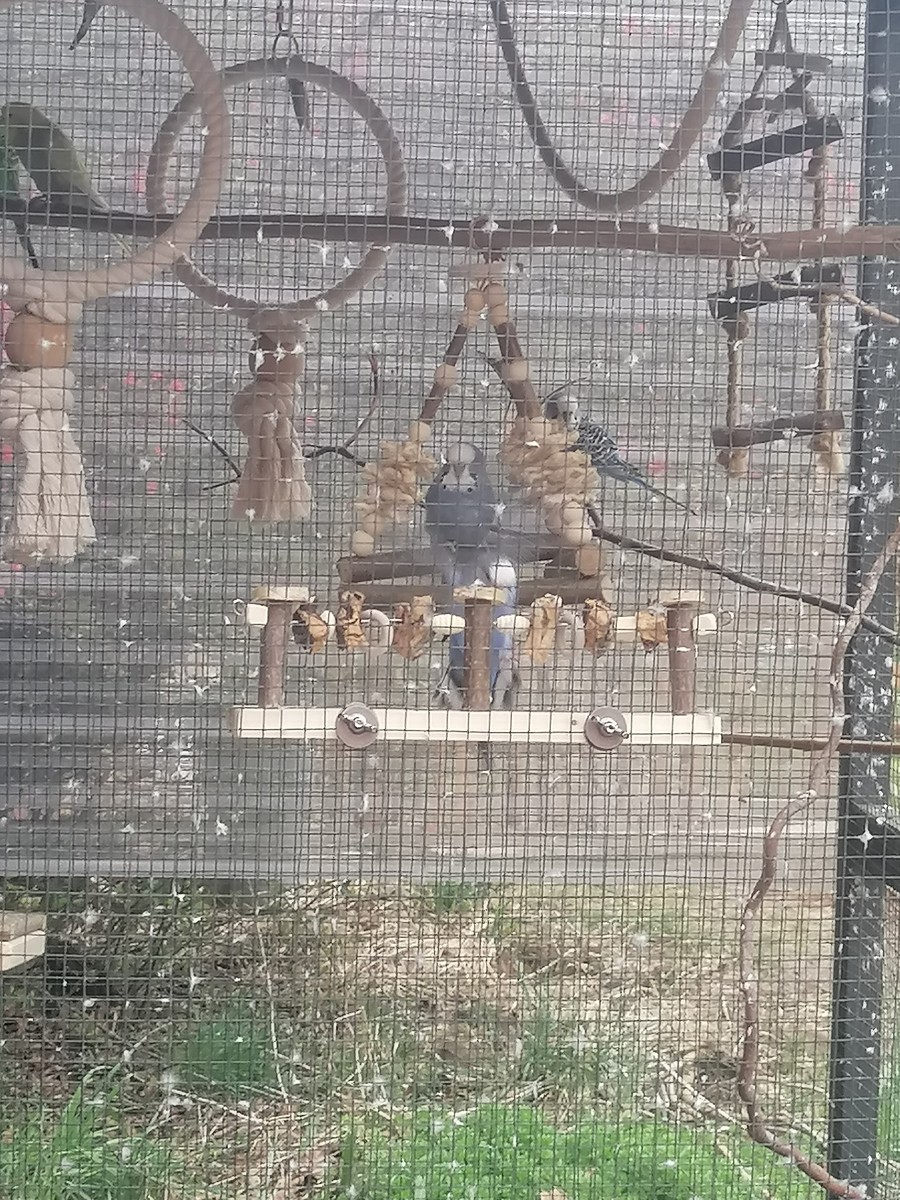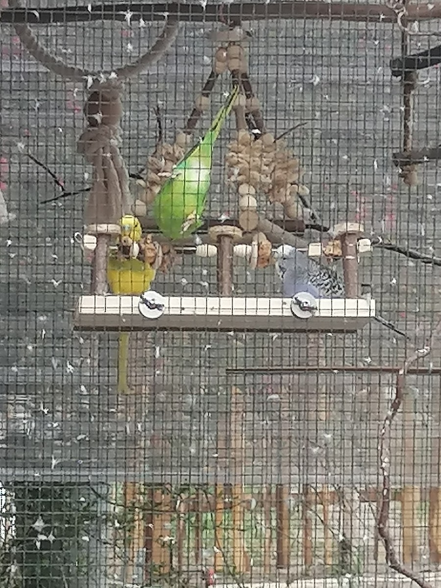 Hallo, ich melde mich auch mal wieder. Nun wird es langsam Frühling. Meine Wellis haben den Winter draußen alle putzmunter erlebt. Sie haben auch den ganzen Winter im Außenbereich geschlafen. Im Innenbereich halten sie sich gerne auf dem großen Astgeflecht auf und zum Fressen und Trinken. Das Wasser war nur an wenigen Tagen gefroren. Jetzt, wo das erste Grün sprießt, sammel ich wieder Vogelmiere, frisches Gras, Brennesseln und Löwenzahn. Da sind sie begeistert von. Ich hoffe eure Vögel haben den Winter im Warmen genausogut überstanden wie meine "Eisvögel" Liebe Grüße Anet