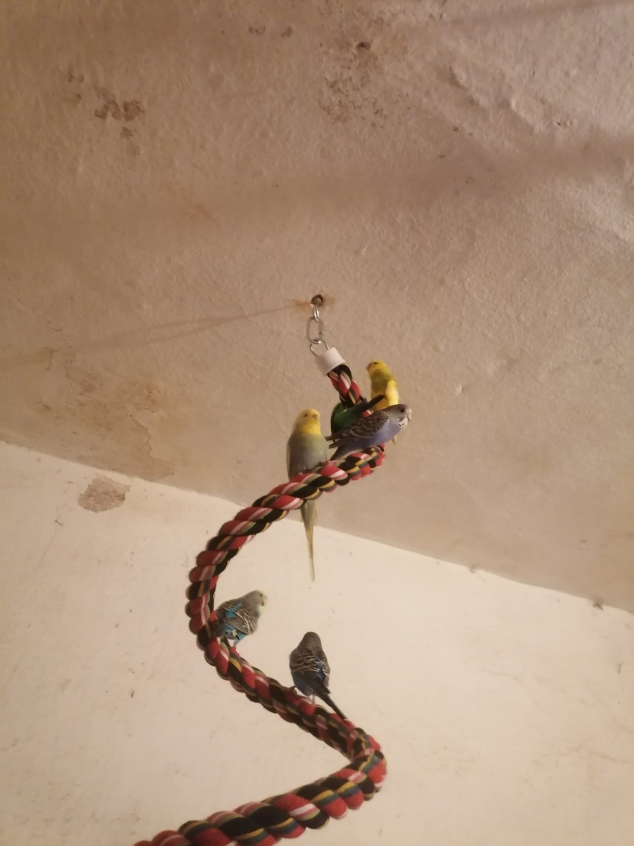 Hab die Klorollenstücke auch auf Strohband gefädelt und mal drinnen in den Flugbaum gehängt. Vielleicht kommen die mal sich aufwärmen..
