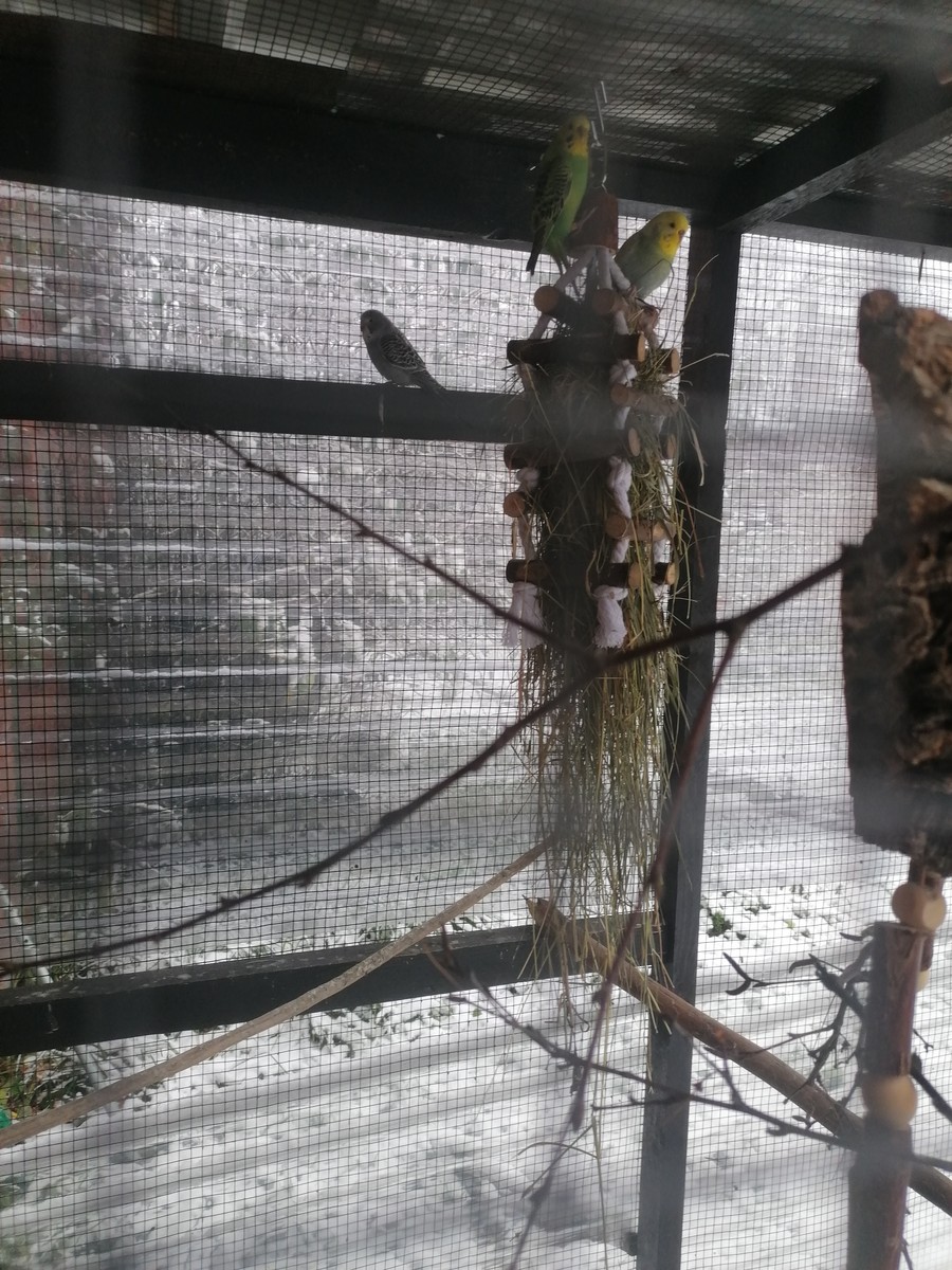 Ich bin fürs Frühjahr auch schon am planen. Ich möchte eine richtig große, naturnahe Voliere bauen. Ich denke an 4x5Meter Fläche und 3Meter Höhe. Die Hälfte überdacht, die andere Hälfte Mit Büschen, kleinen Bäumen, Naturboden. Das ganze vor einem schon vorhandenem Stallraum 2x4m, der als Innen Bereich ausgebaut wird. Ich möchte für mich eine Sitzecke einbauen, so dass ich inmitten meiner Vögel verweilen kann. Ich glaube für gesunde Vögel ist das super schön. Allerdings müssen sie am besten schon aus solcher Freilufthaltung stammen, oder im Frühjahr einziehen, so dass sie sich langsam an den Wechsel der Jahreszeiten gewöhnen. Meine waren alle noch nie drinnen und es scheint ihnen gar nichts auszumachen, dass es jetzt Winter ist. Wichtig ist eine kalorienreiche, vitaminreiche Ernährung. Und natürlich brauchen sie einen zugfreien Innen Bereich. Ich werde über den Winter immer mal berichten wie meine Wellis mit der Witterung klarkommen.