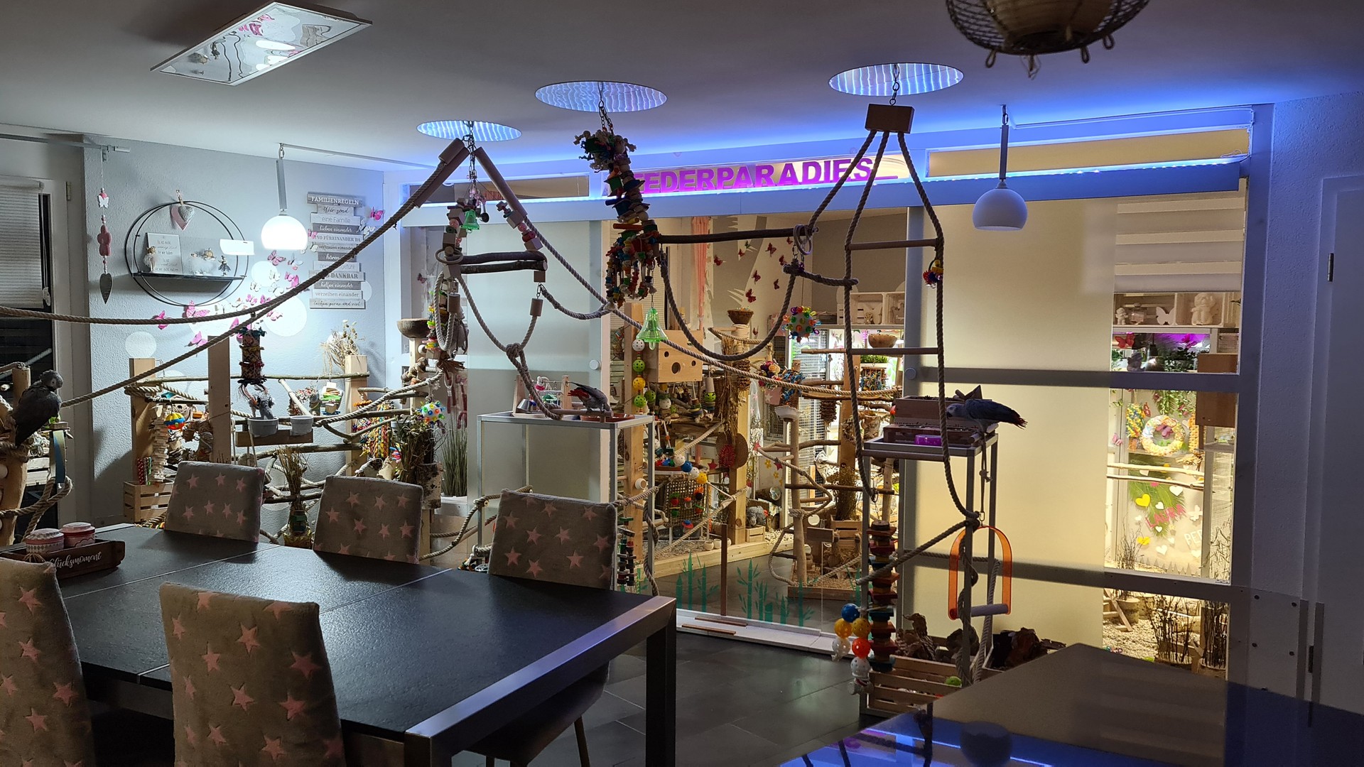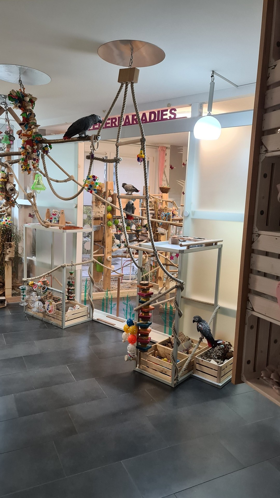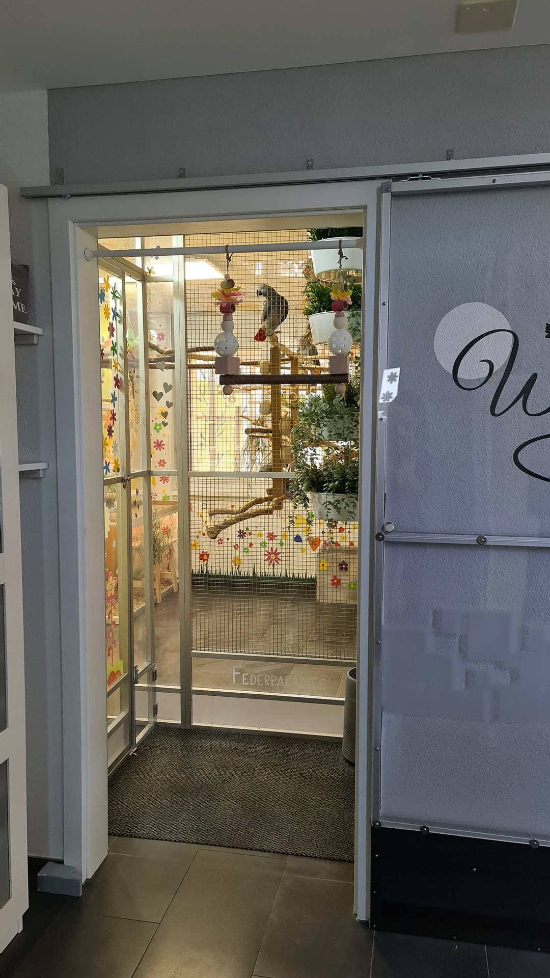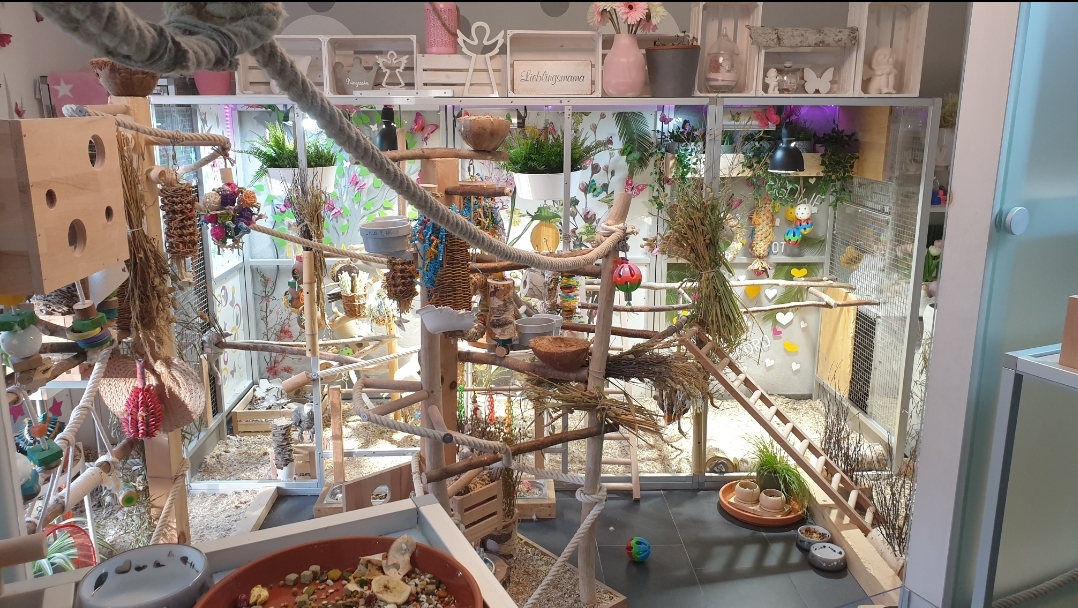 Da wir keine Käfige haben, leben alle frei im unteren Stock.