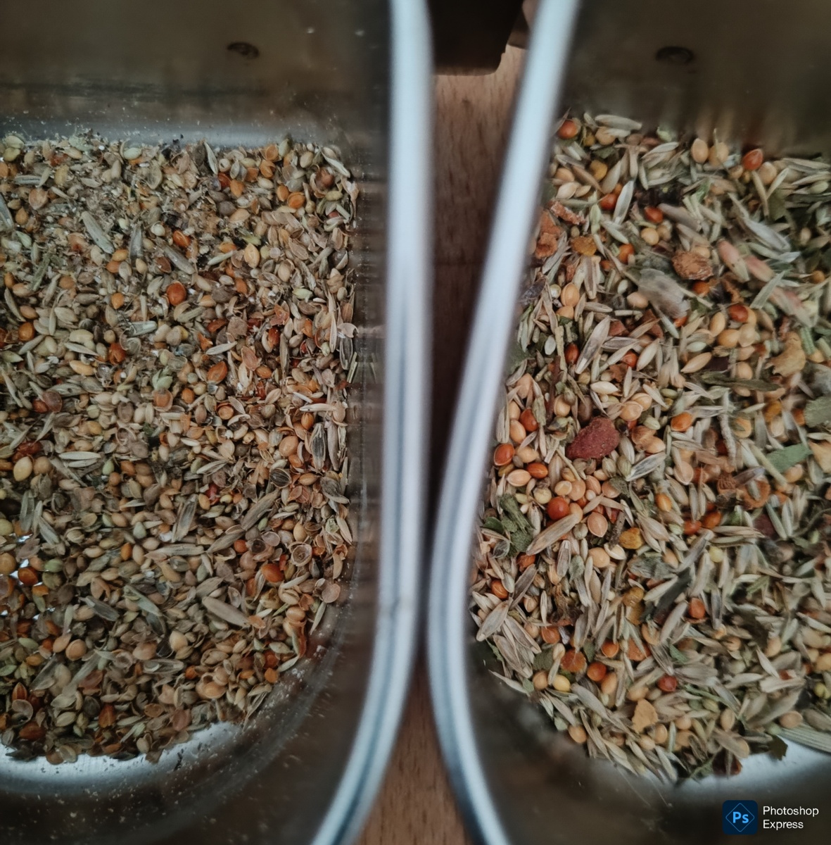 bei meinen Vögeln bleibt öfters Futter übrig. Ich glaube das sind meist die kleineren Körner die sie liegen lassen.