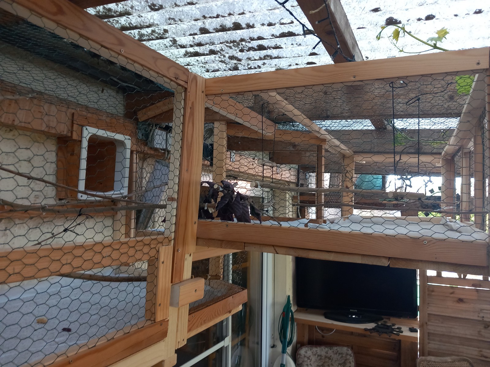Habe für unsere beiden Wellis von ihrer Voliere im Wohnzimmer unter der Decke einen Flugtunnel gebaut der zur Terassentür geht, daneben unter der Decke habe ich ein ein Loch in der Wand mit einer grossen Katzenklappe die nach außen geht ,angebaut. Aussen ist dann gleich eine neue kleine Volier, die wenn sie rauskommen würden vergrößert werden soll.