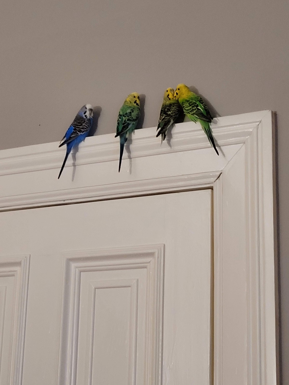 Normal sitzen sie nie auf der Türzarge (Gottseidank). Aber es war ihnen einfach etwas unheimlich. Sie wissen daß die federlose Böse was vorhat ,wenn sie mit der grossen Leiter anrückt.