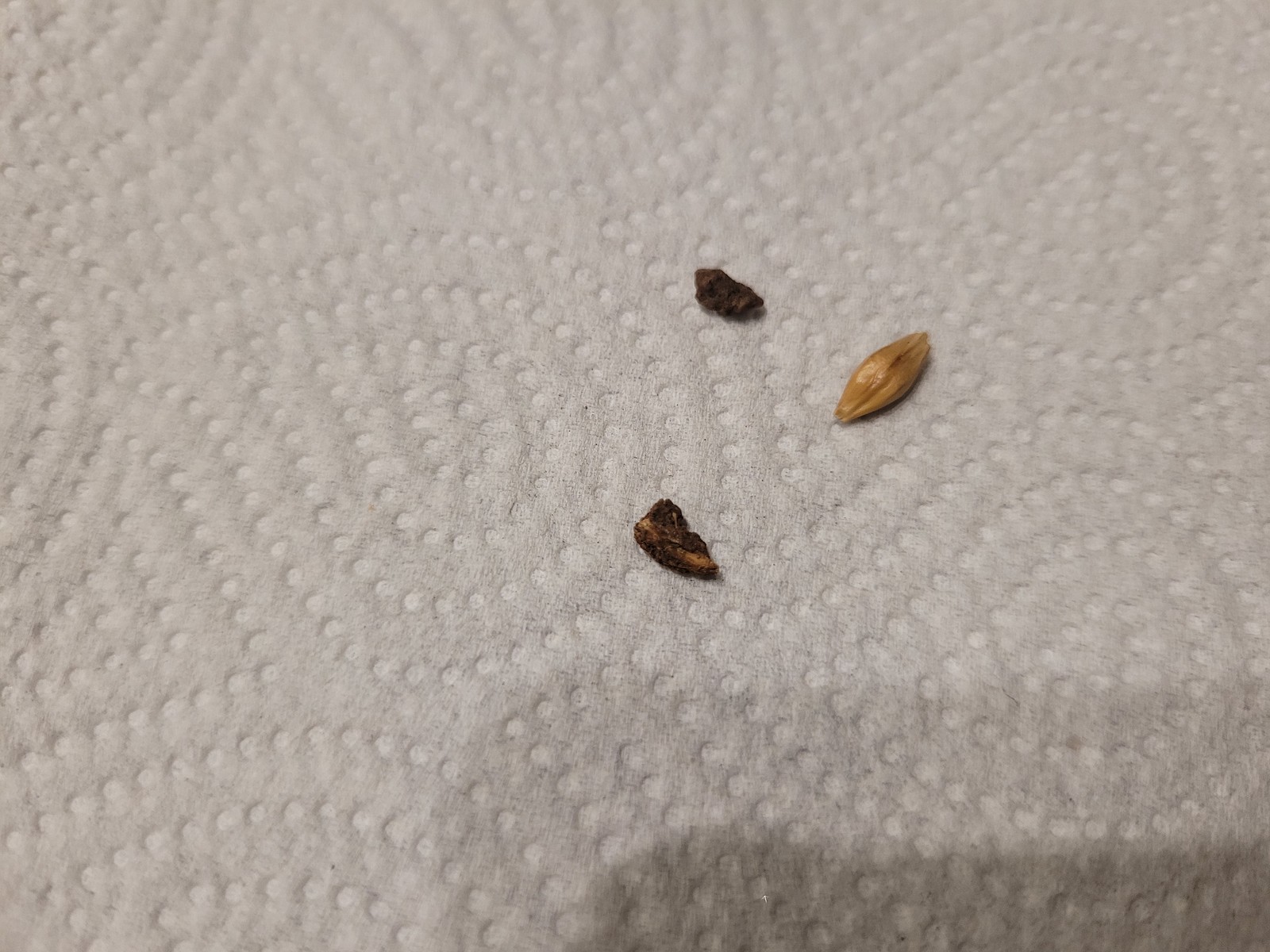 Ja da bin ich mir sicher, ich habe leider nur noch eine Packung und da waren jetzt keine länglichen Kohlestückchen drinne aber dafür habe ich das gefunden, das kleine schwarze sieht wieder so aus :-/ ich bestelle bei der Körnerbude und war bis jetzt auch immer zufrieden aber das macht mich stutzig:(