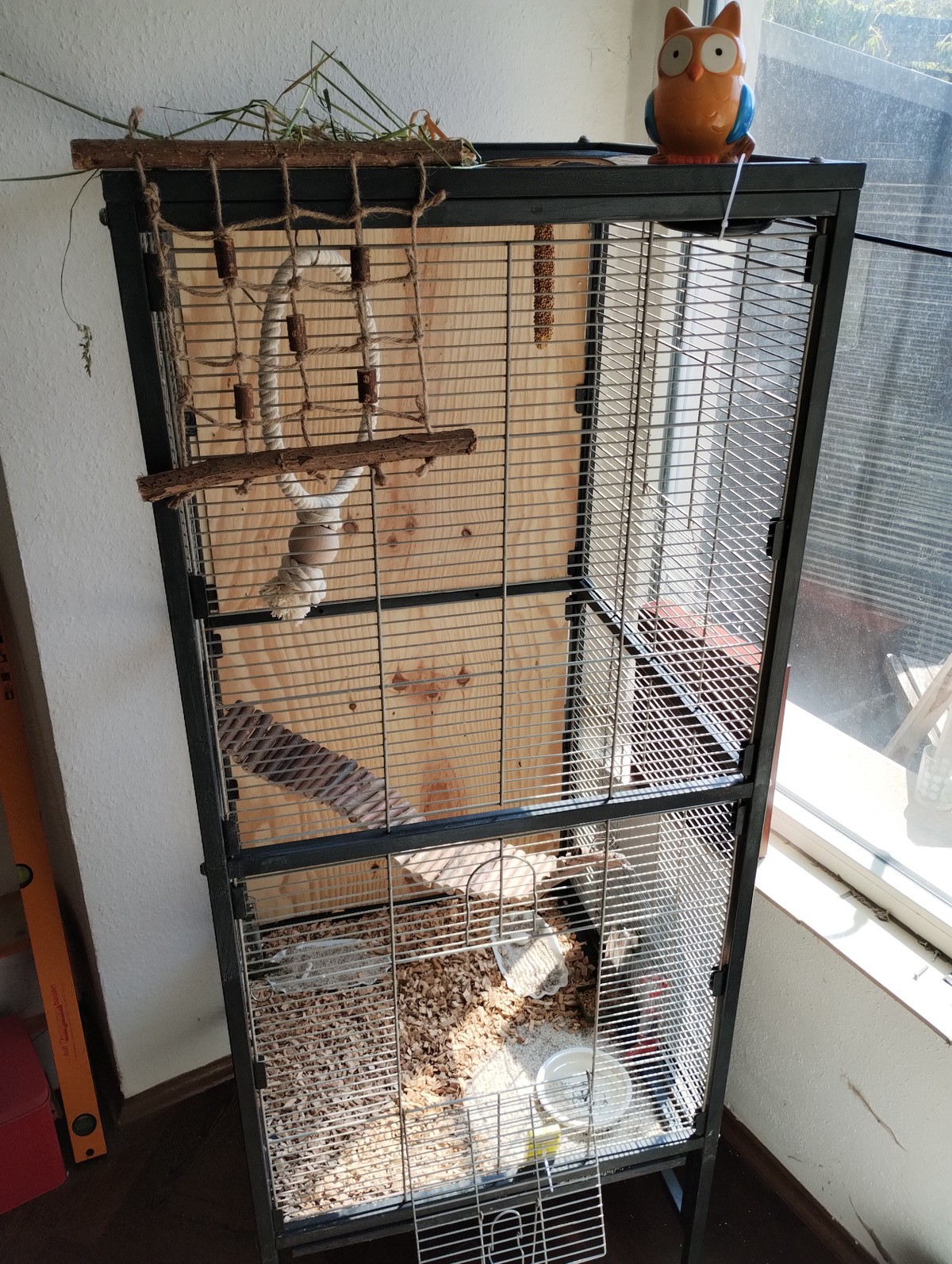 Werde gleich ein bisschen umbauen sobald er fertig mit fressen ist und mir Raum lässt. Möchte ihn ungerne stören, da es ja der erste Tag mit Käfig ist und es schon eine Weile gedauert hat bis er verstanden hat, dass es jetzt da Fressen gibt.
