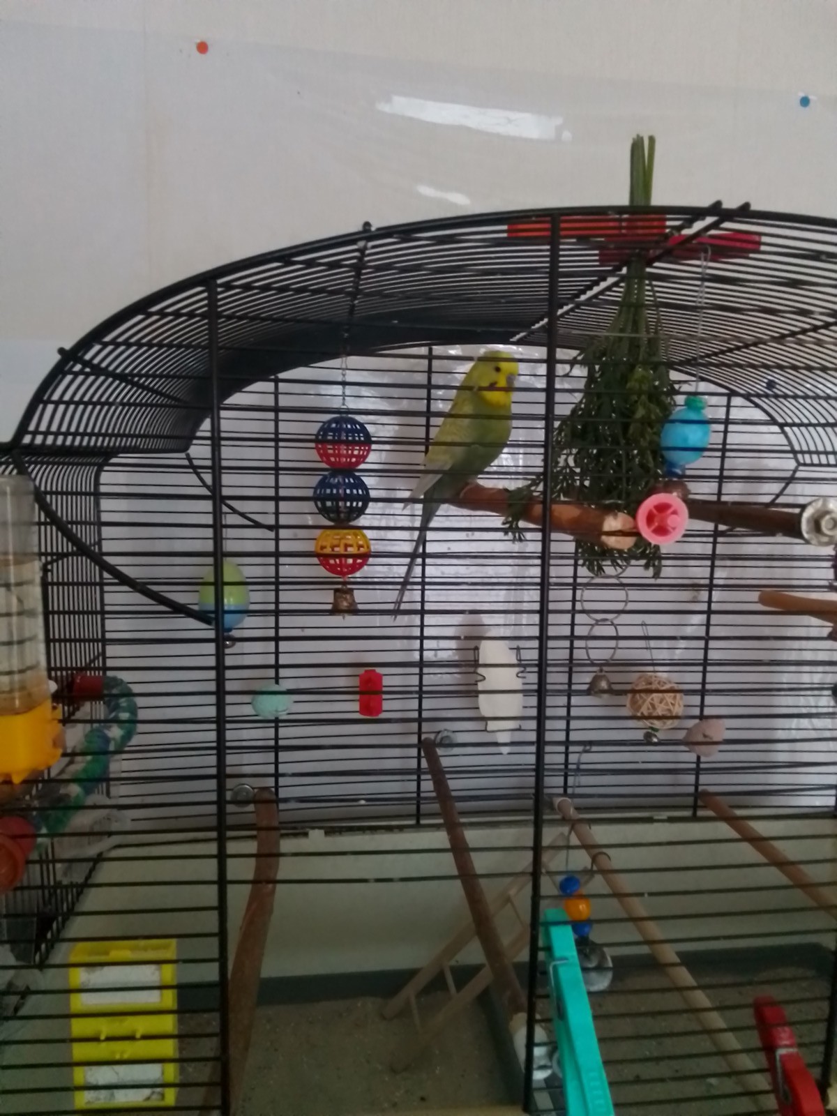 Hier habe ich endlich Platz zum fliegen. Meine Menschen waren erstaunt wie gut ich fliegen kann. Ich habe dann noch ein paar Runden gedreht, bis ich auf dem Käfig von Fienchen gelandet bin.