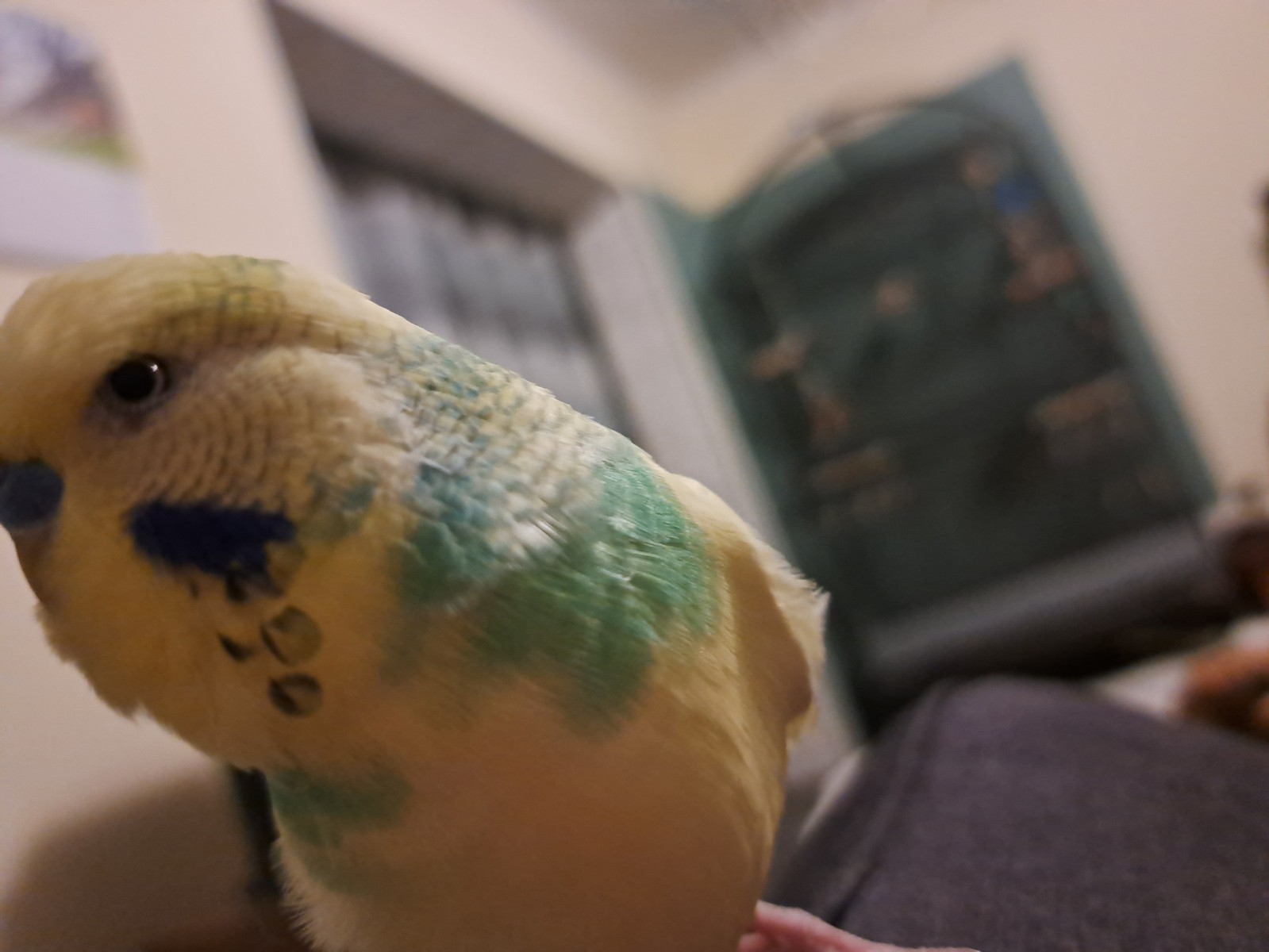 Und Chico kam schon so zutraulich zu mir, ist auch der erste Welli der von sich aus zu mit aufs Sofa kommt. Anfangs konnte er sogar tatsächlich " Die Geschwindigkeit " und " Wiesbaden " sagen ( obwohl er aus Berlin kommt) aber das hat sich inzwischen auch schon ziemlich verloren, aber ich habs als Beweis aufgenommen